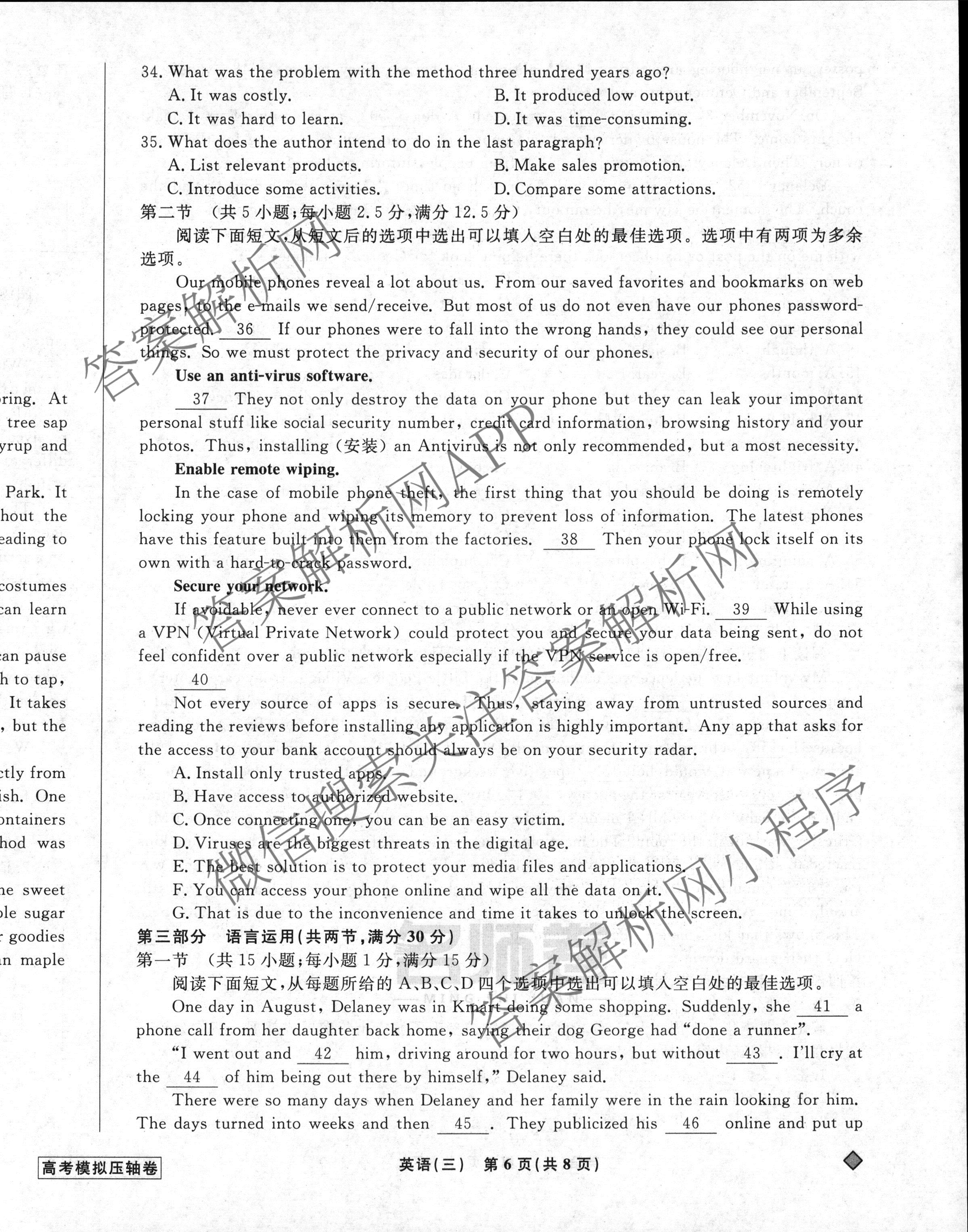 - (高三)[衡水名师卷]2022-2023高考模拟压轴卷 英语(无角标)(三)3答案