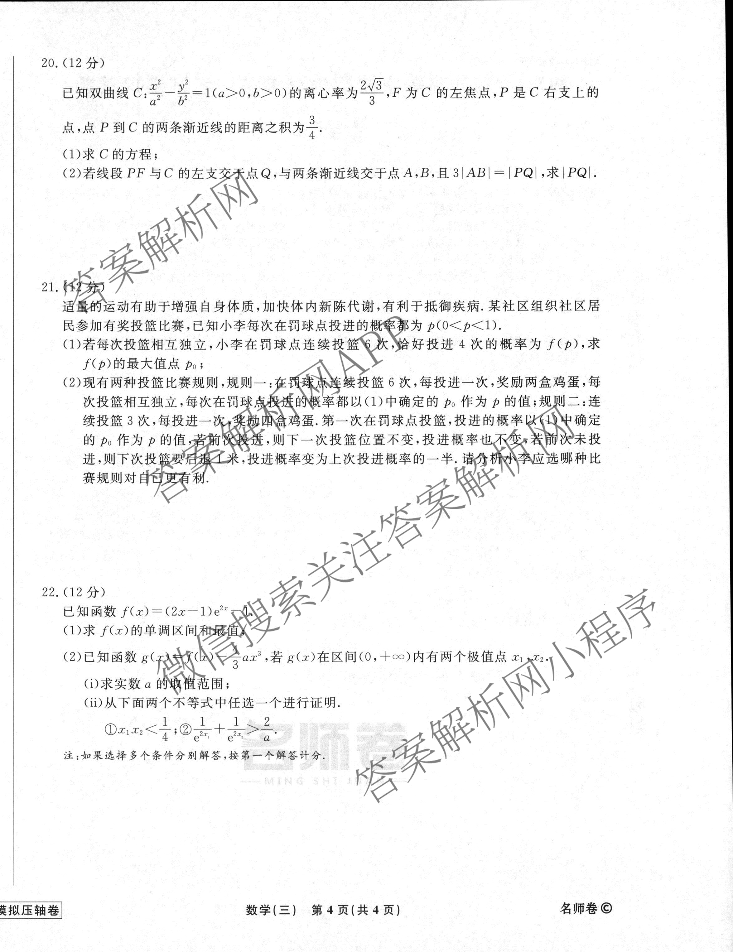 衡水名师卷·2022-2023高考模拟压轴卷 数学(实心◇)(三)3试题,目前分科卷答案网已经汇总了衡水名师卷·2022-2023高考模拟压轴卷 数学(实心◇)(三)3试题的各科答案和试卷,获取更多衡水名师卷答案解析,请在关注本站。
