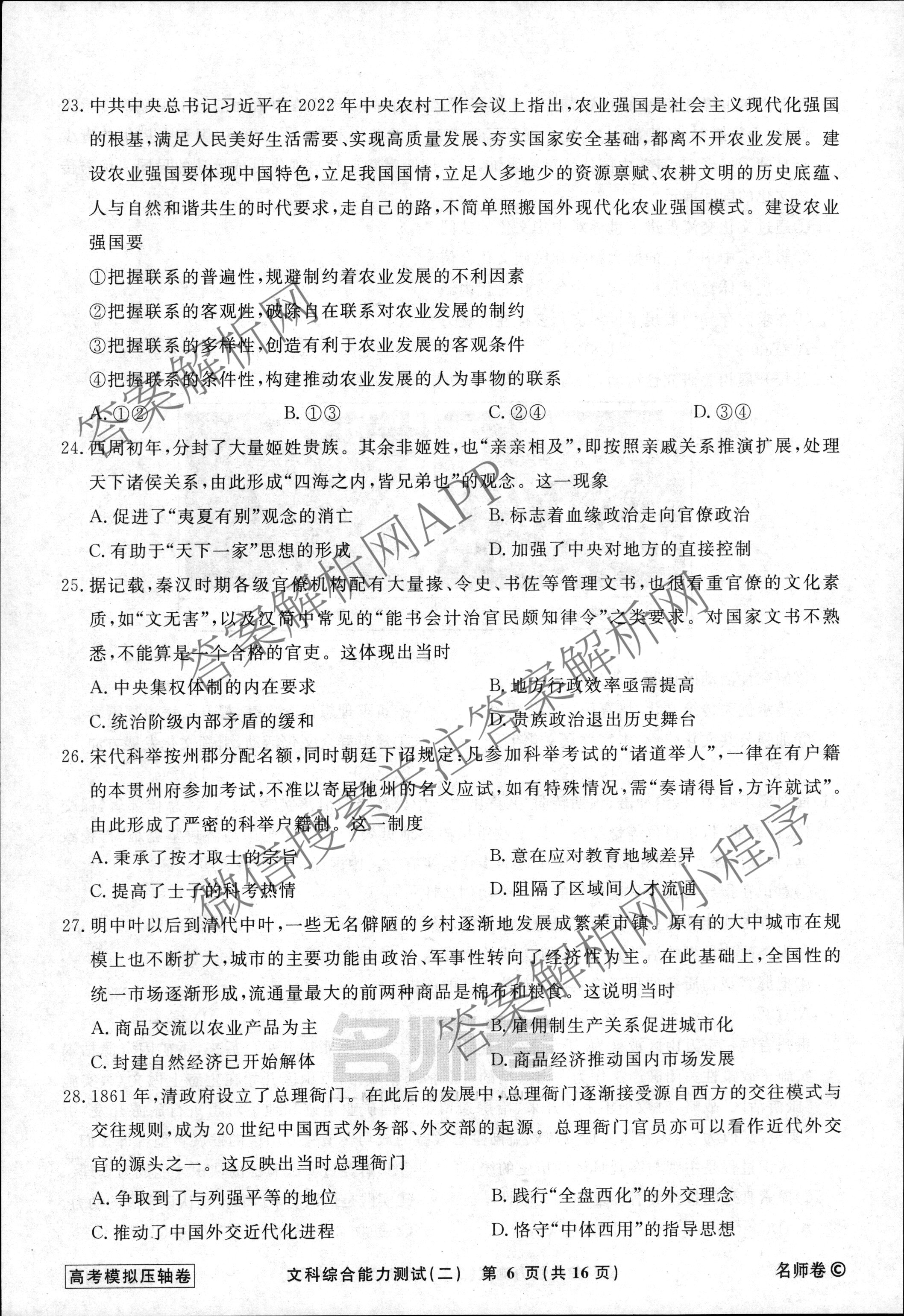衡水名师卷·2022-2023高考模拟压轴卷 文综(老教材)(二)2试题,目前分科卷答案网已经汇总了衡水名师卷·2022-2023高考模拟压轴卷 文综(老教材)(二)2试题的各科答案和试卷,获取更多衡水名师卷答案解析,请在关注本站。