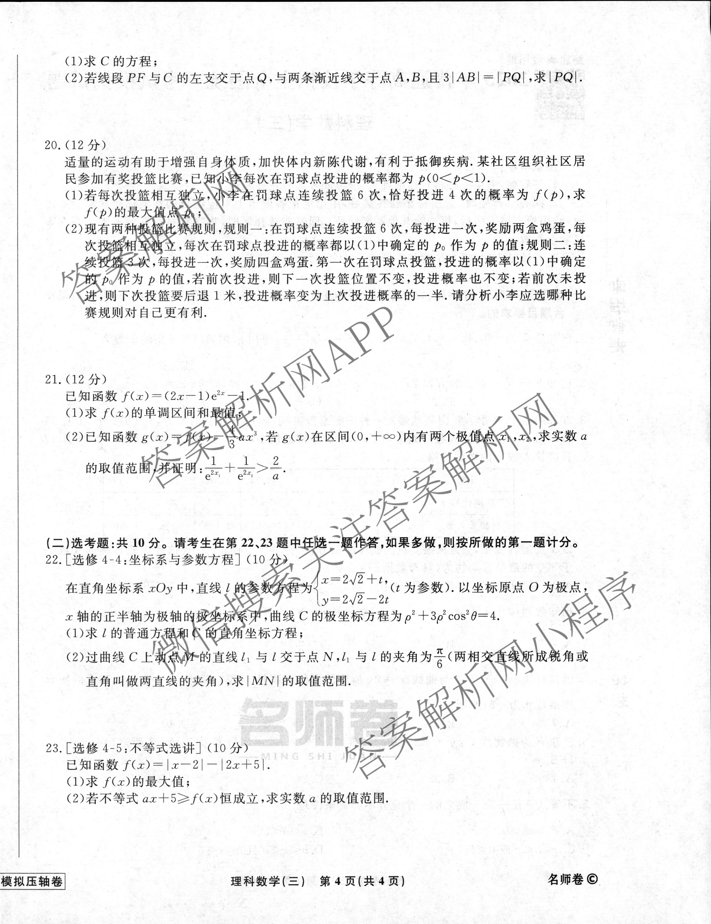 衡水名师卷·2022-2023高考模拟压轴卷 理数(三)3试题,目前分科卷答案网已经汇总了衡水名师卷·2022-2023高考模拟压轴卷 理数(三)3试题的各科答案和试卷,获取更多衡水名师卷答案解析,请在关注本站。