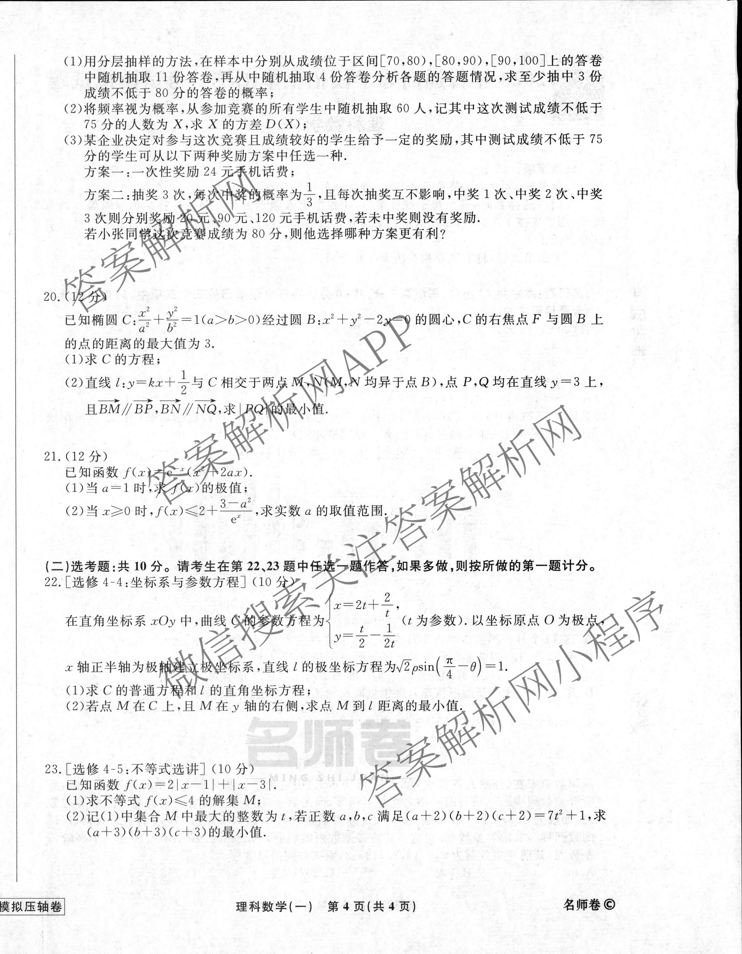 - [高三][衡水名师卷]2022-2023高考模拟压轴卷 理数(一)1答案