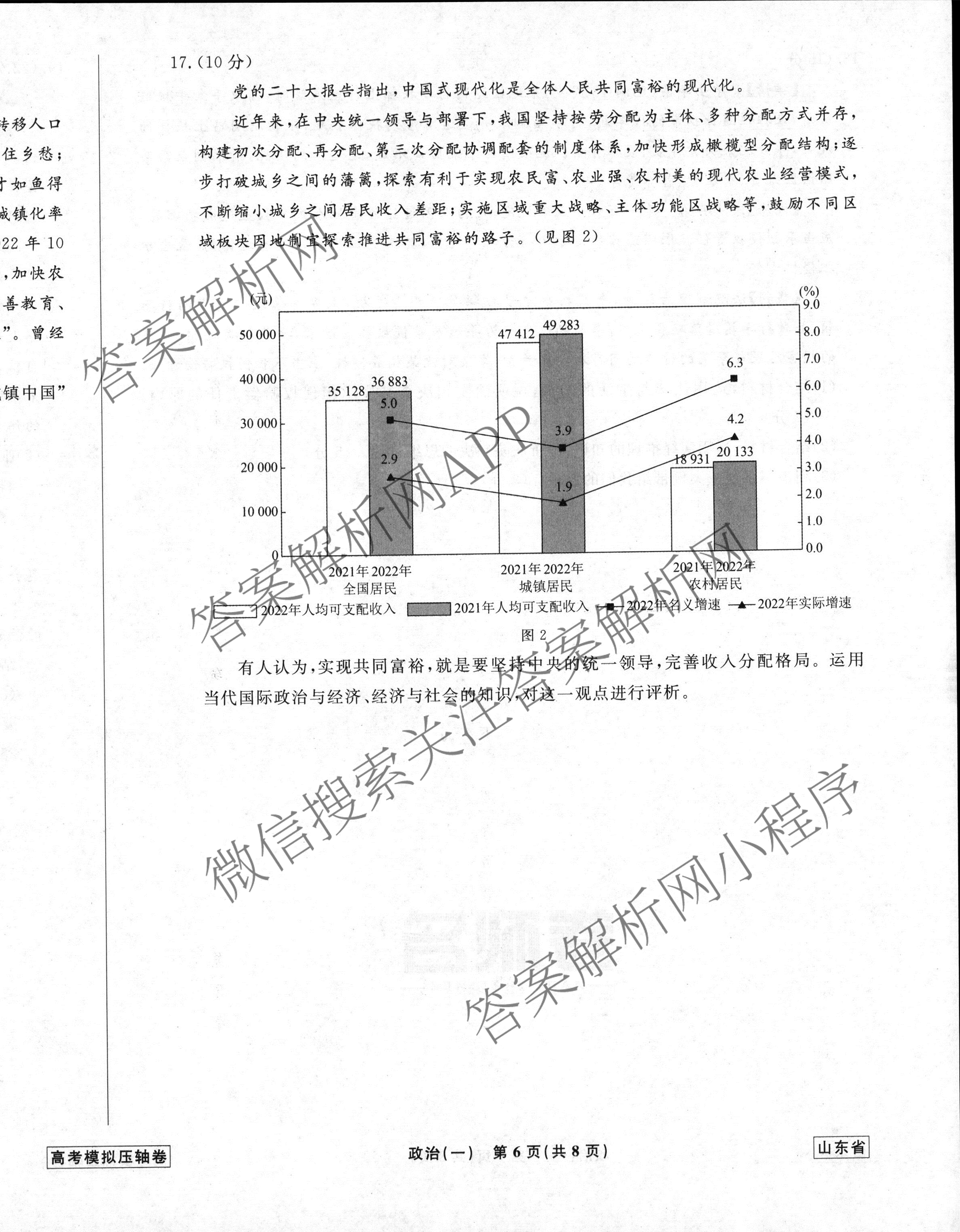 - 2022~2023[衡水名师卷]·高考模拟压轴卷 政治(山东)(一)1答案