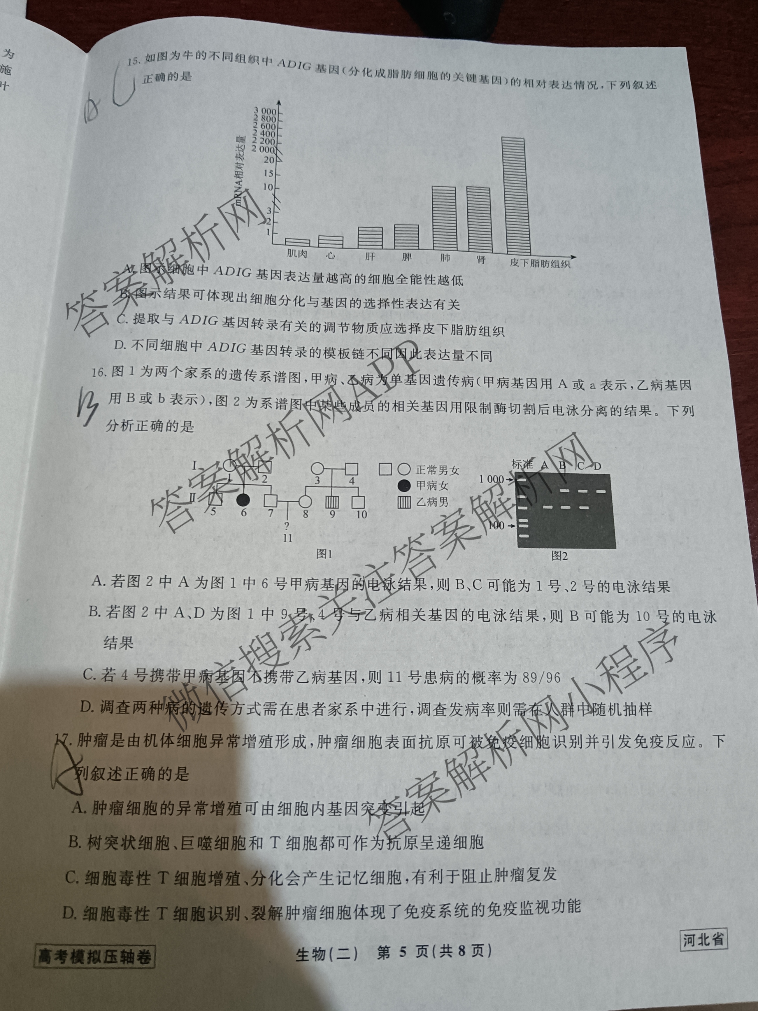- [衡水名师卷]2023年河北省普通高中学业水平选择性考试模拟试题 高考模拟压轴卷(二)2生物(河北)答案