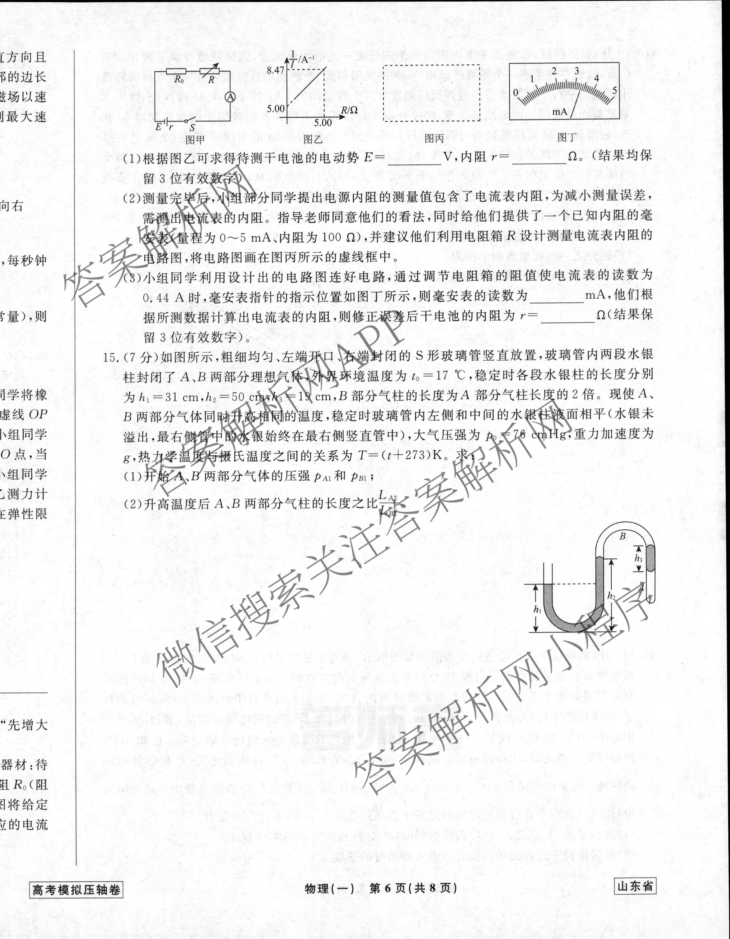 衡水名师卷·2022-2023高考模拟压轴卷 物理(山东)(一)1试题,目前分科卷答案网已经汇总了衡水名师卷·2022-2023高考模拟压轴卷 物理(山东)(一)1试题的各科答案和试卷,获取更多衡水名师卷答案解析,请在关注本站。