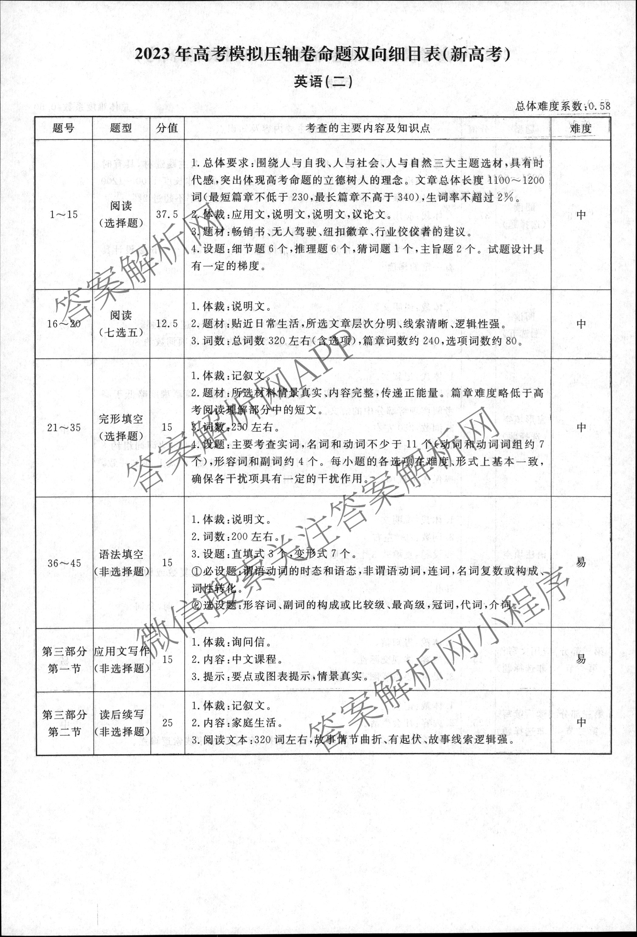 - (高三)衡水名师卷2022~2023高考模拟压轴卷 英语(无角标)(二)2答案