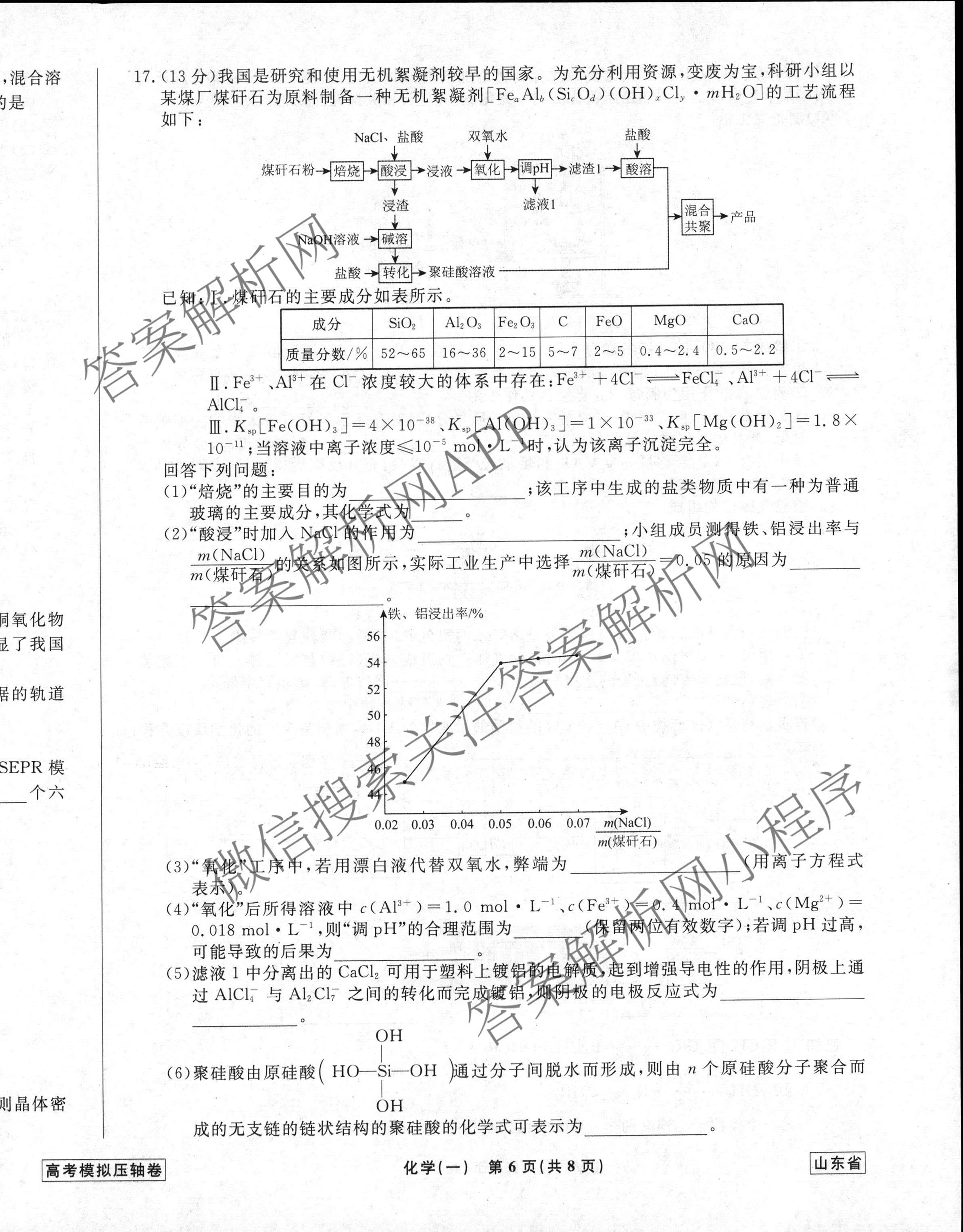 衡水名师卷·2022-2023高考模拟压轴卷 化学(山东)(一)1试题,目前分科卷答案网已经汇总了衡水名师卷·2022-2023高考模拟压轴卷 化学(山东)(一)1试题的各科答案和试卷,获取更多衡水名师卷答案解析,请在关注本站。