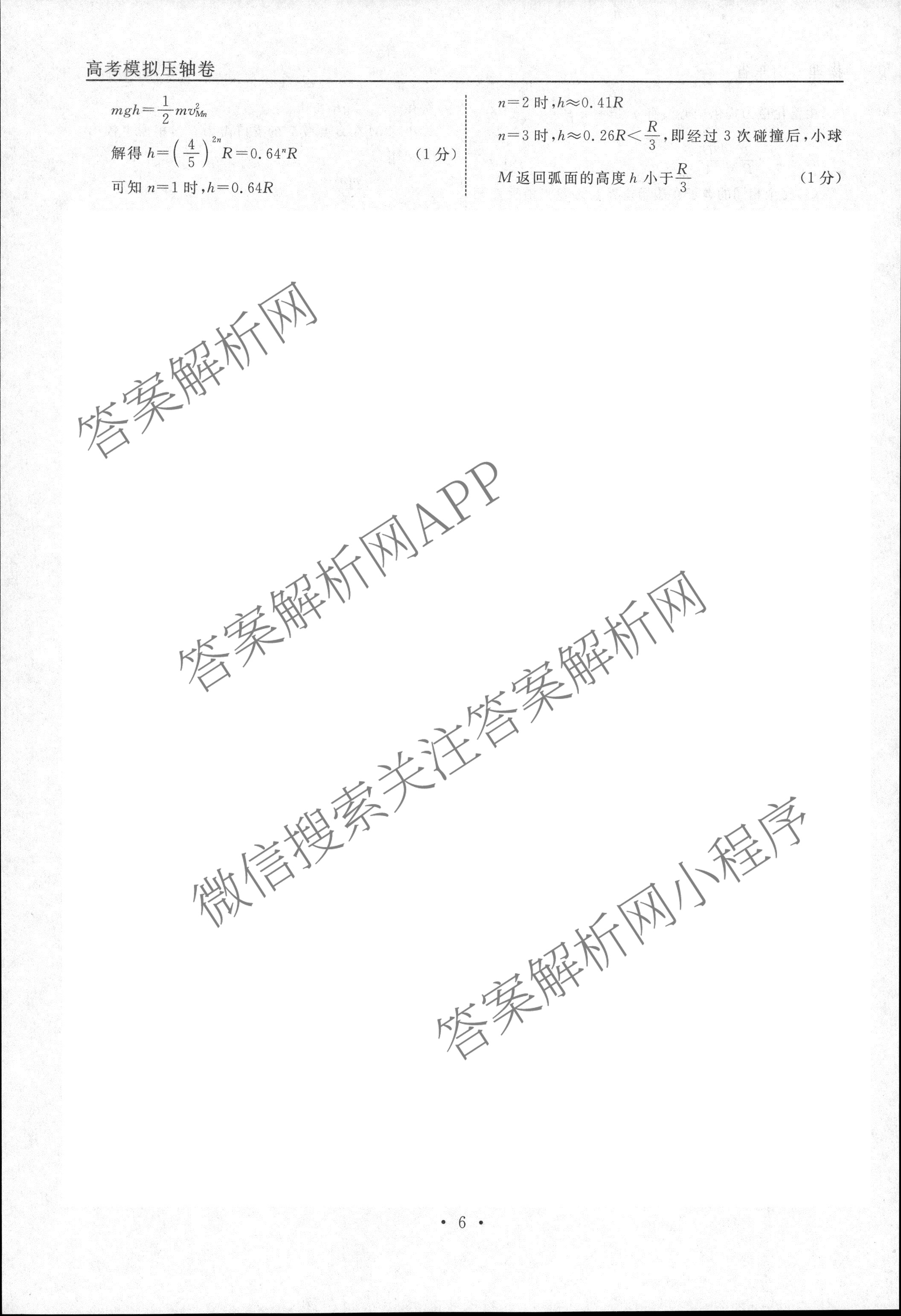 - 2022~2023(衡水名师卷)·高考模拟压轴卷 物理(湖南)(一)1答案