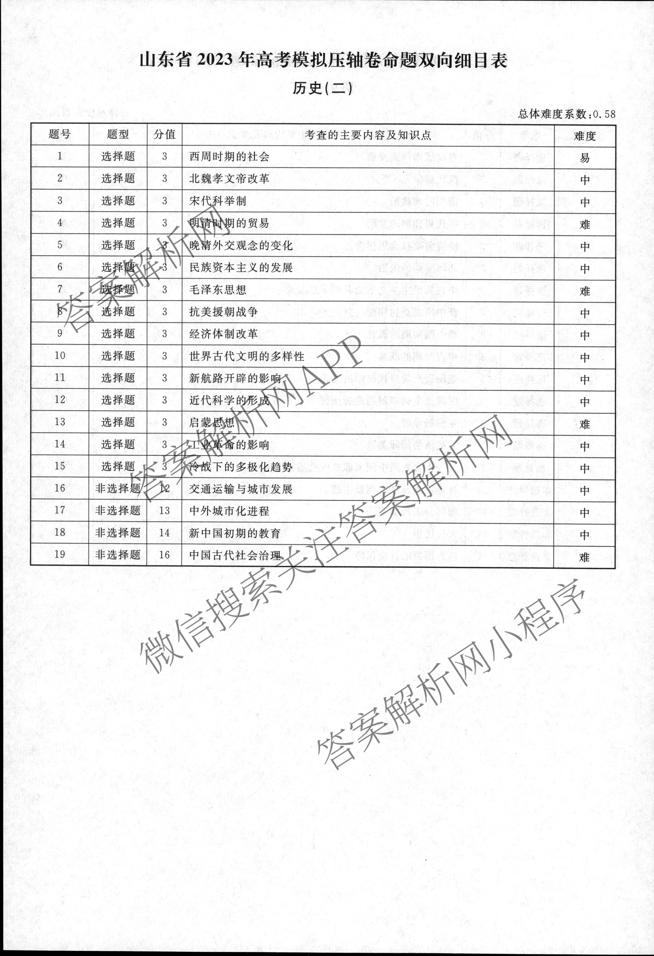 - [衡水名师卷]2022~2023高考模拟压轴卷 历史(山东)(二)2试题