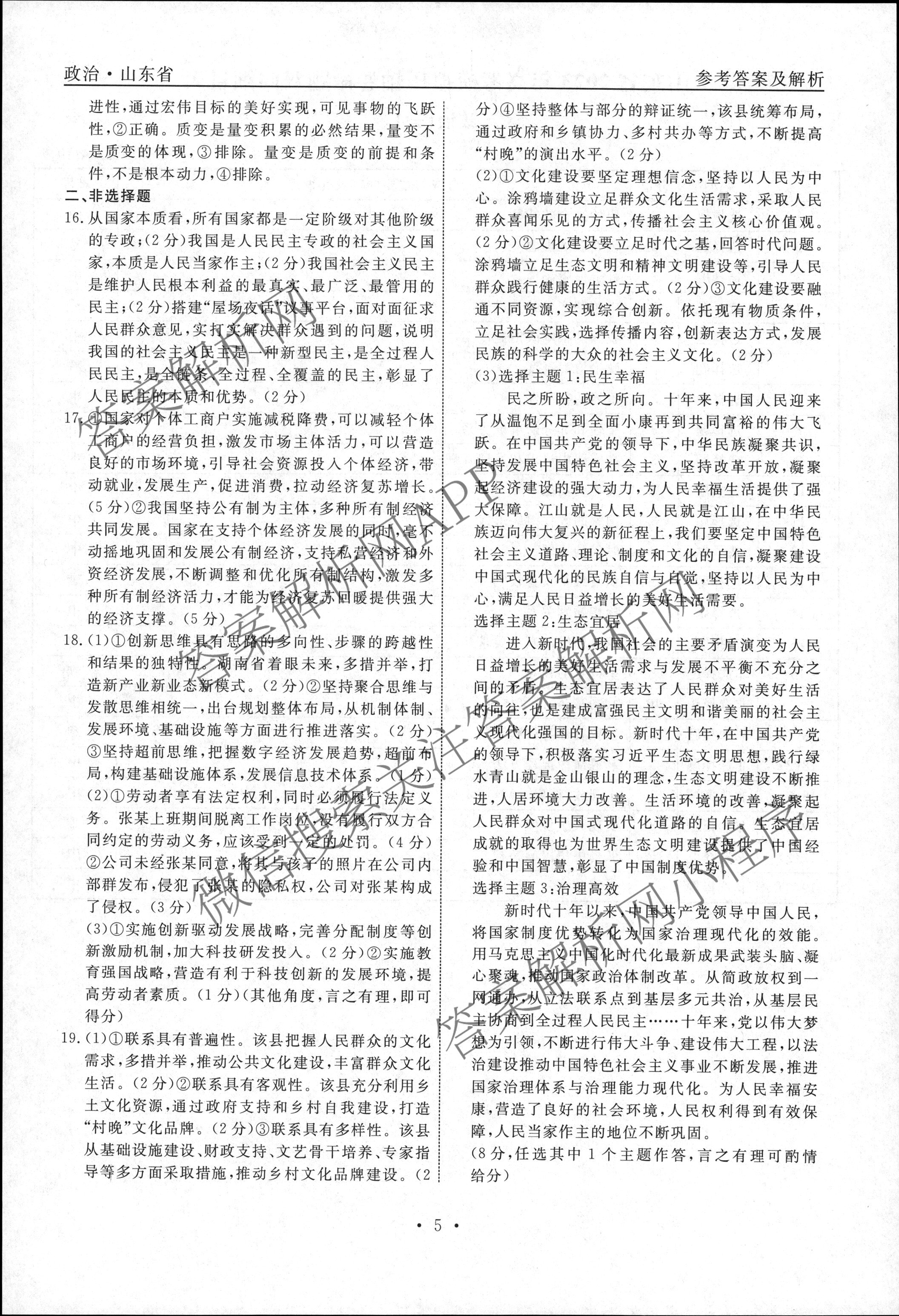 - (高三)(衡水名师卷)·2022~2023高考模拟压轴卷 政治(山东)(三)3答案