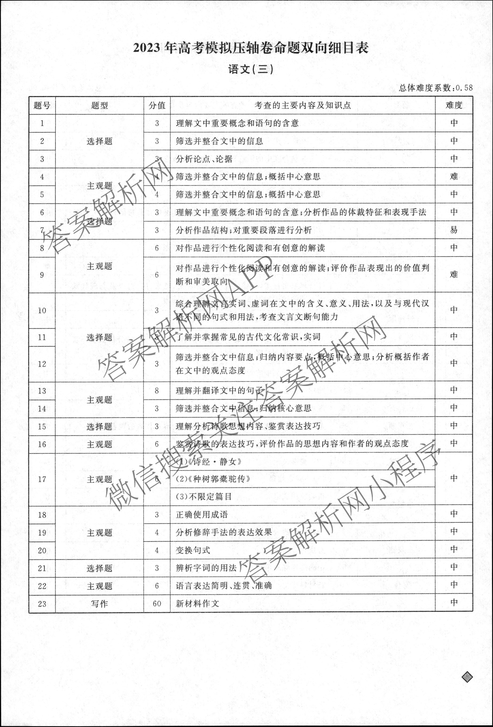 - 2022~2023衡水名师卷高考模拟压轴卷 语文(空心◇)(三)3答案