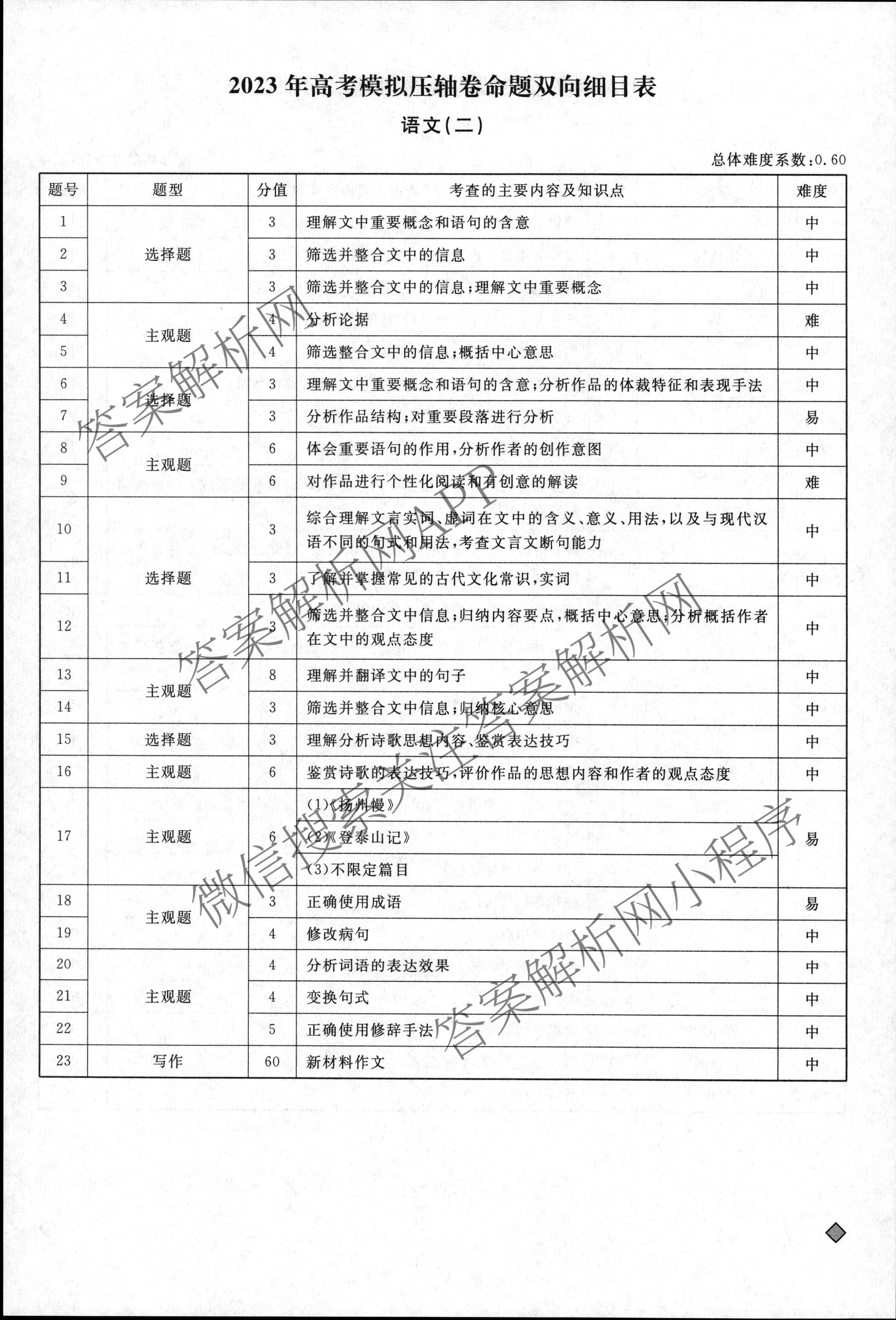 - [衡水名师卷]2022~2023高考模拟压轴卷 语文(实心◇)(二)2答案