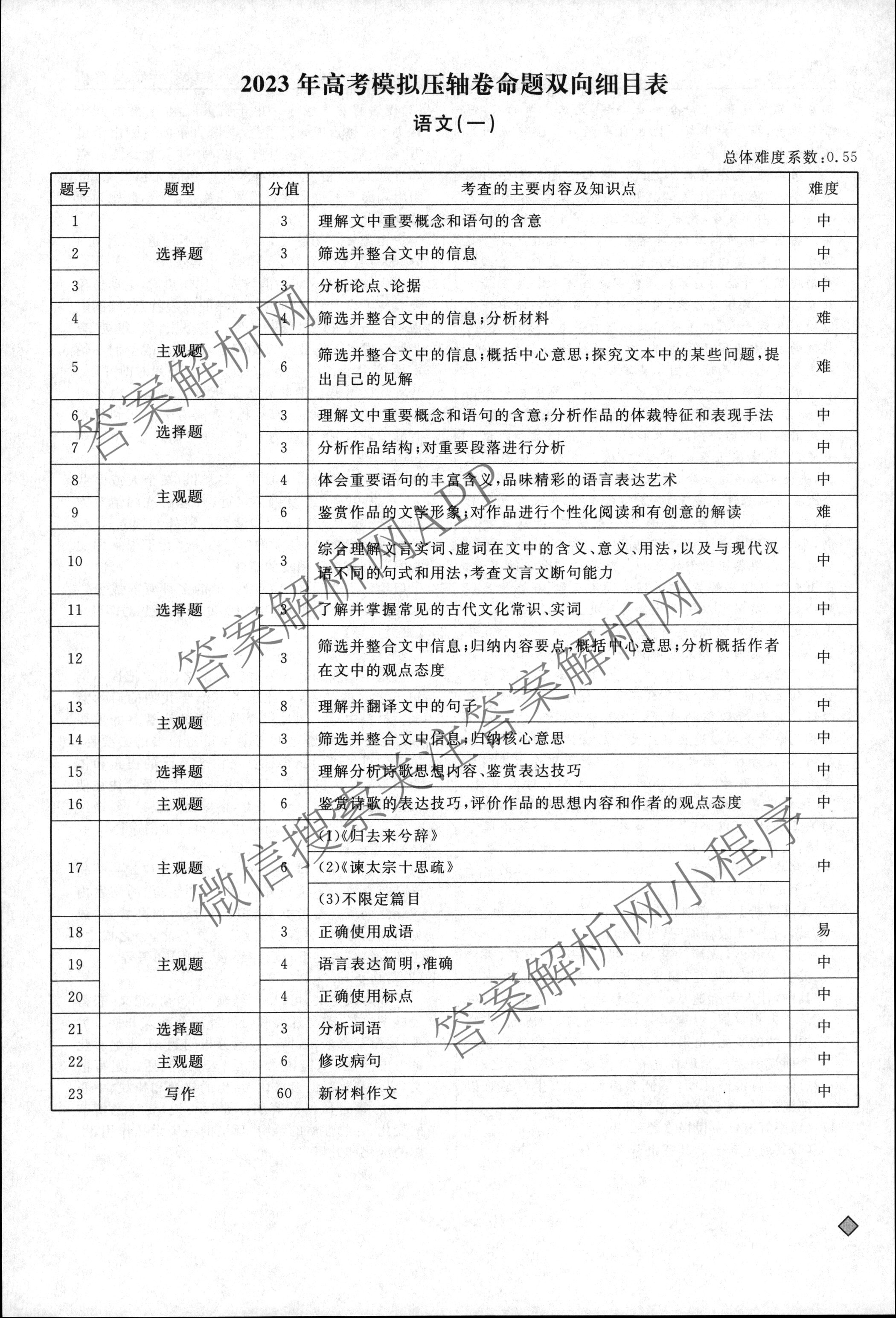- (高三)(衡水名师卷)2022-2023高考模拟压轴卷 语文(实心◇)(一)1答案