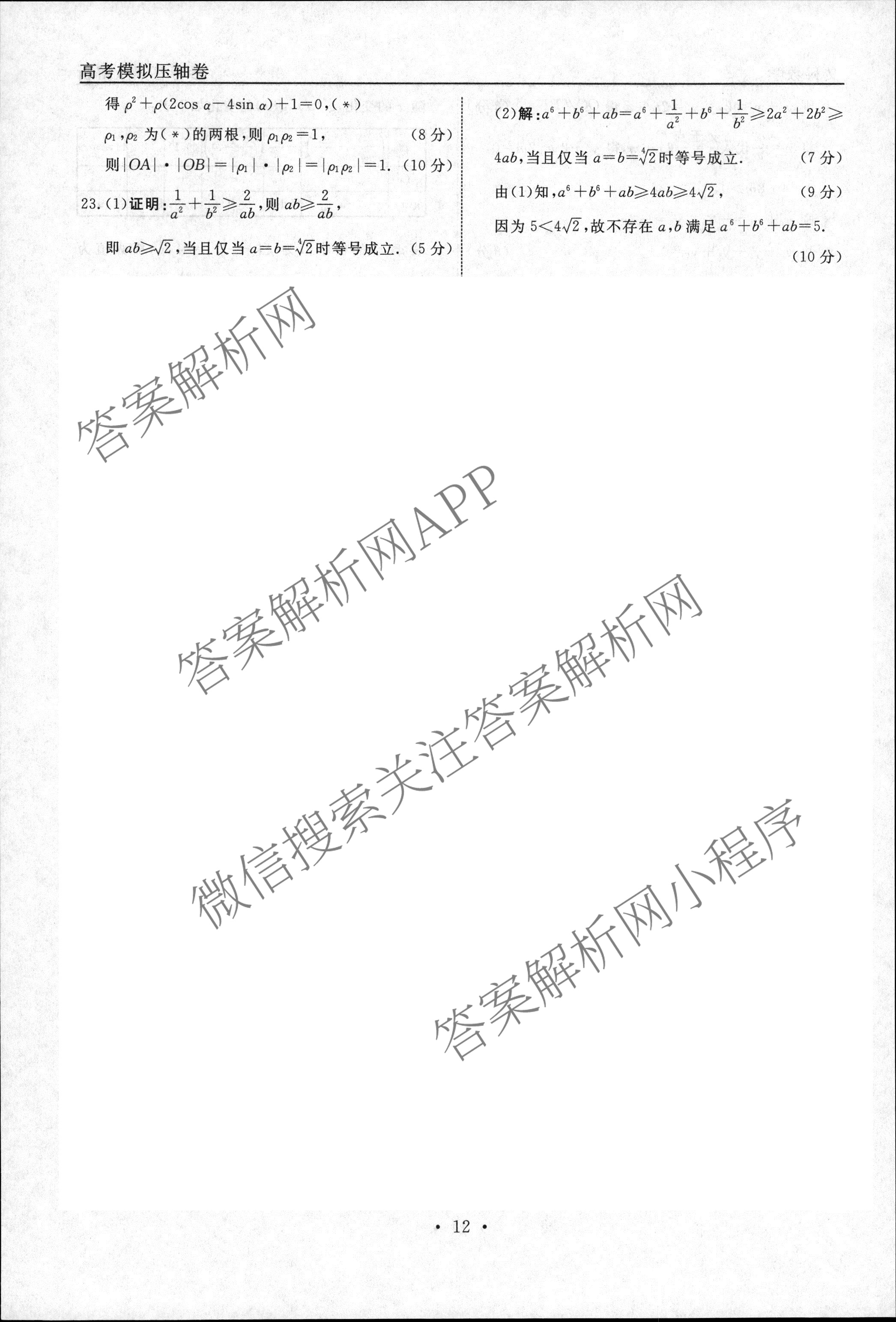 衡水名师卷·2022-2023高考模拟压轴卷 文数(二)2答案,目前分科卷答案网已经汇总了衡水名师卷·2022-2023高考模拟压轴卷 文数(二)2答案的各科答案和试卷,获取更多衡水名师卷答案解析,请在关注本站。