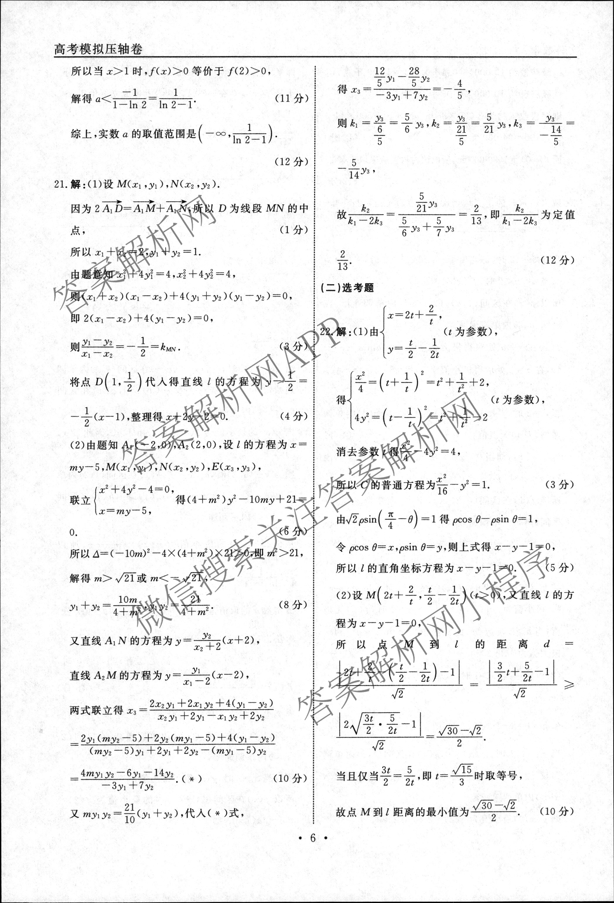 - [高三][衡水名师卷]2022-2023高考模拟压轴卷 理数(一)1答案