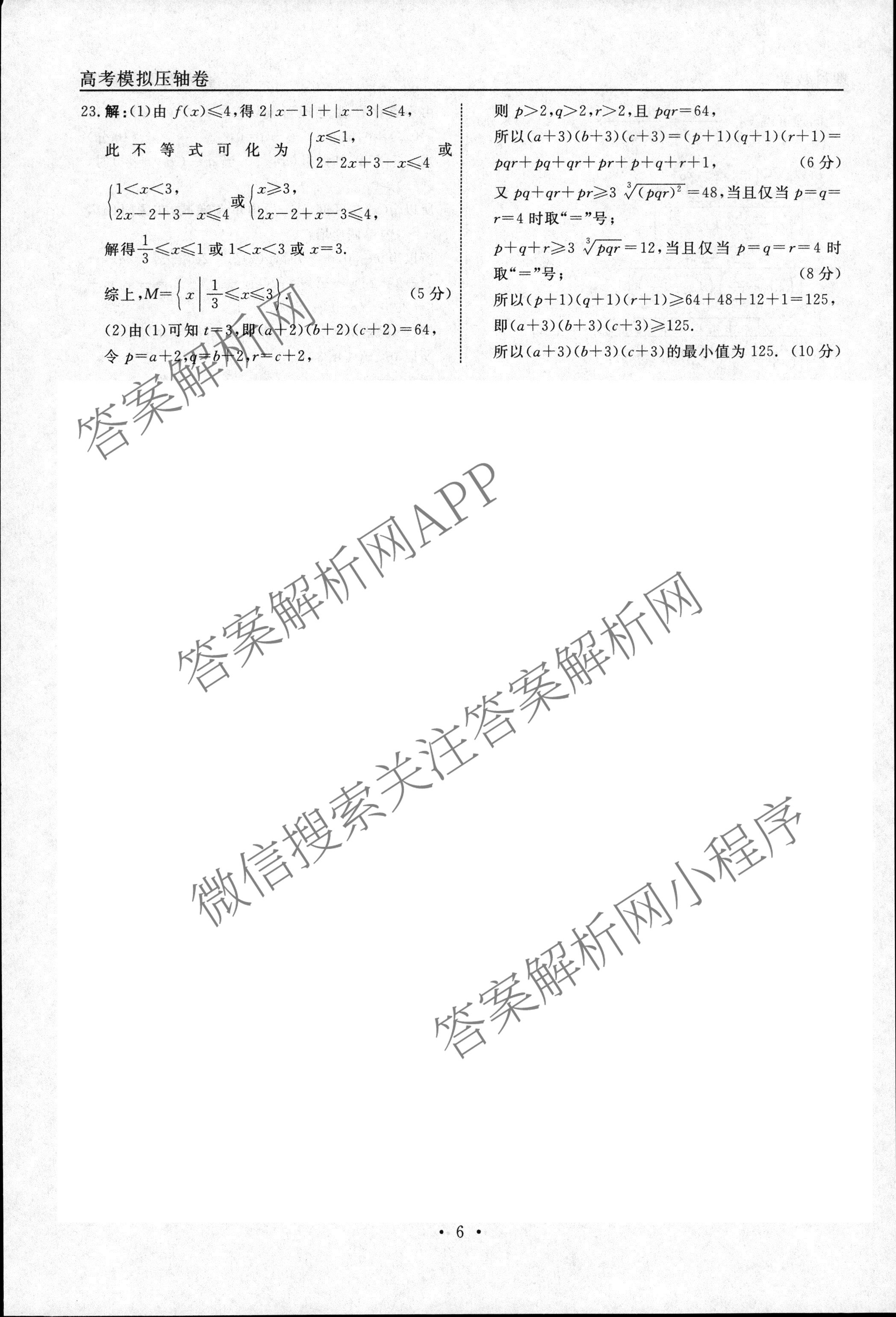 - [高三][衡水名师卷]2022-2023高考模拟压轴卷 理数(一)1答案