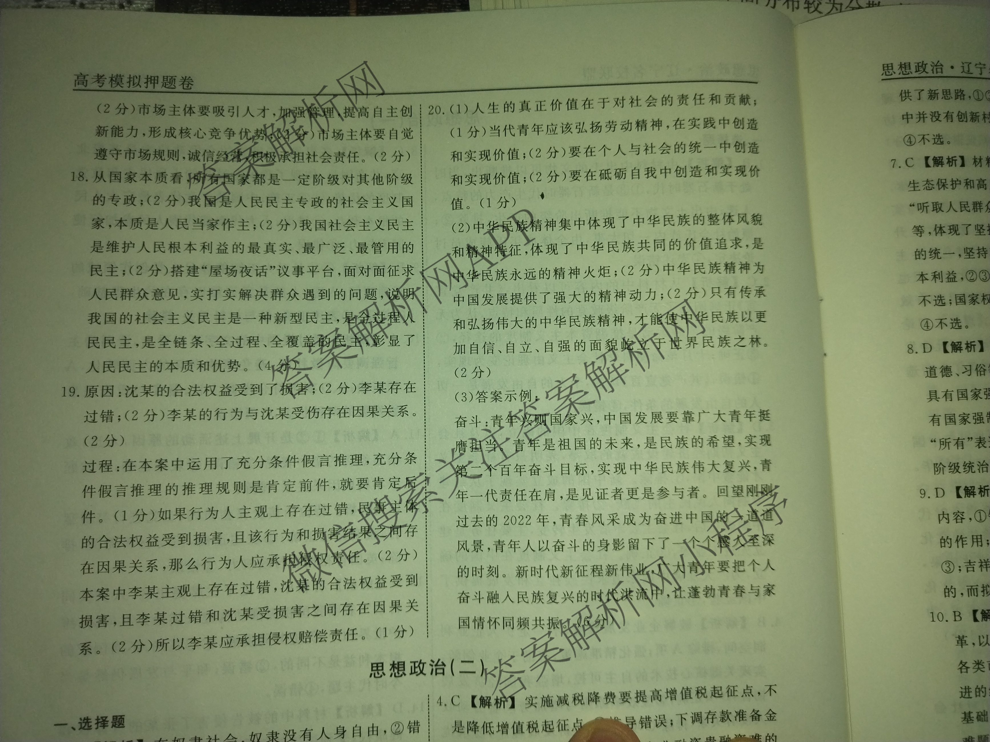 衡水名师卷 2023届高三 辽宁名校联盟押题卷 政治(一)1答案