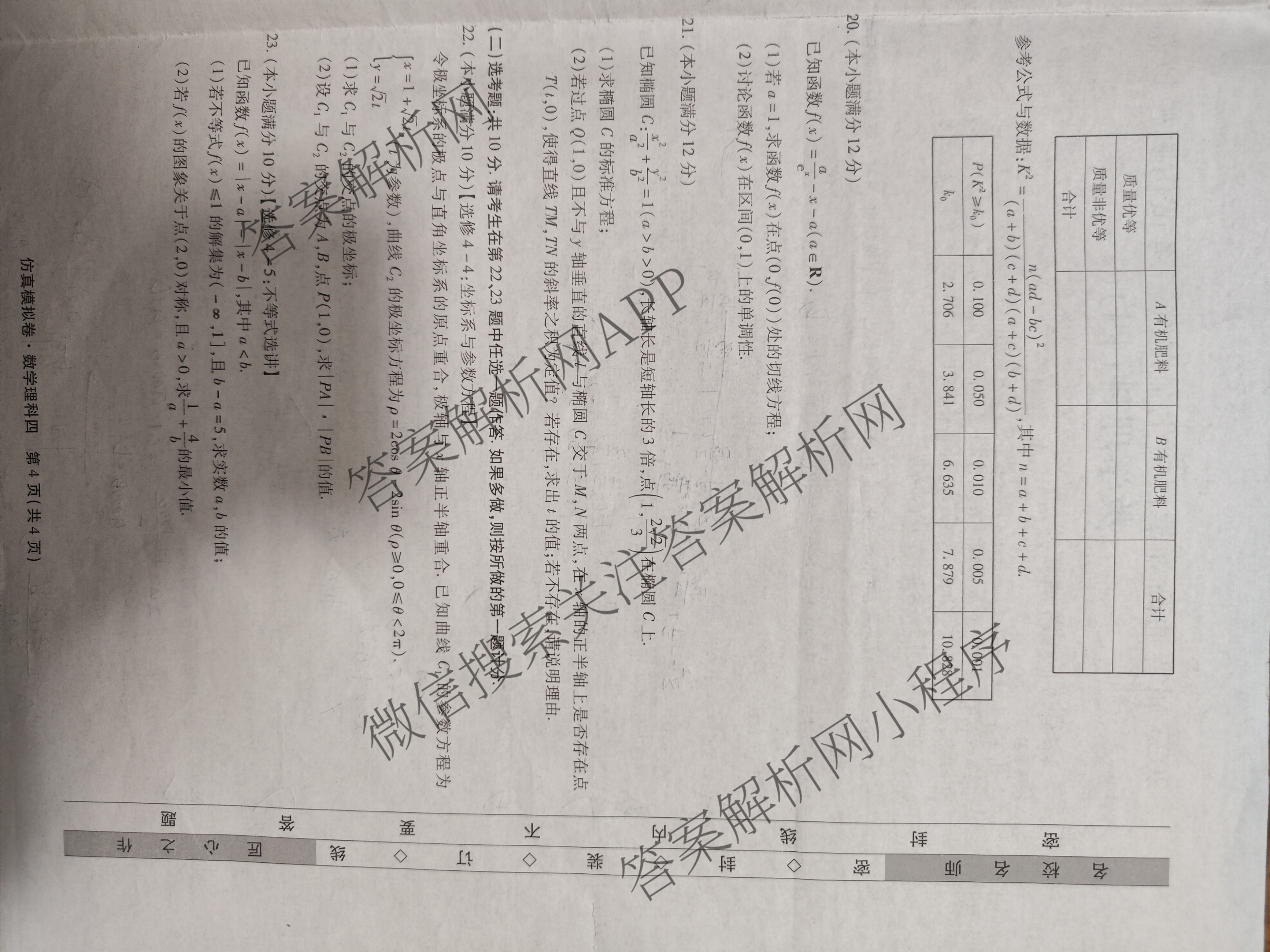衡水名师卷2023届普通高等学校招生全国统一考试仿真模拟卷(四)4理数试题