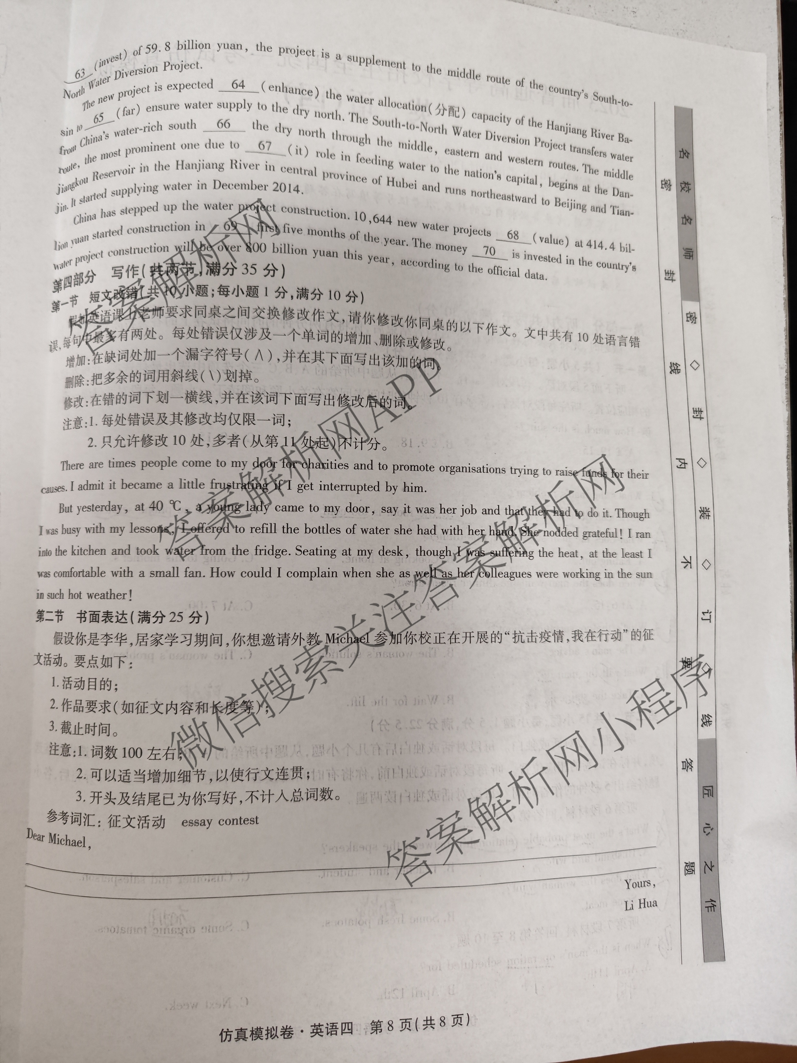 衡水名师卷·2023届普通高等学校招生全国统一考试仿真模拟卷(四)4英语试题,目前分科卷答案网已经汇总了衡水名师卷·2023届普通高等学校招生全国统一考试仿真模拟卷(四)4英语试题的各科答案和试卷,获取更多衡水名师卷答案解析,请在关注本站。