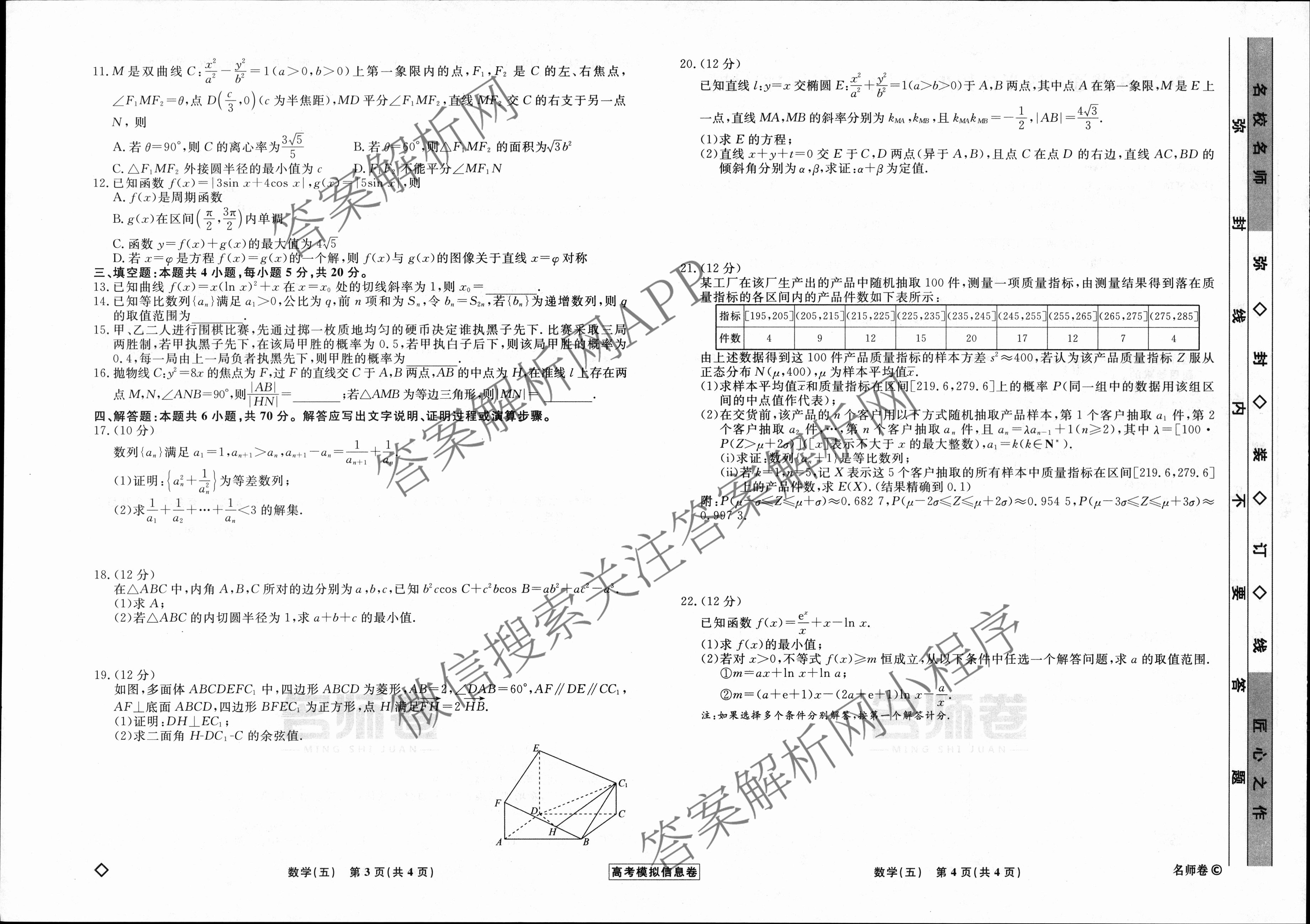 衡水名师卷2022-2023高考模拟信息卷 数学(无页脚)(五)5试题