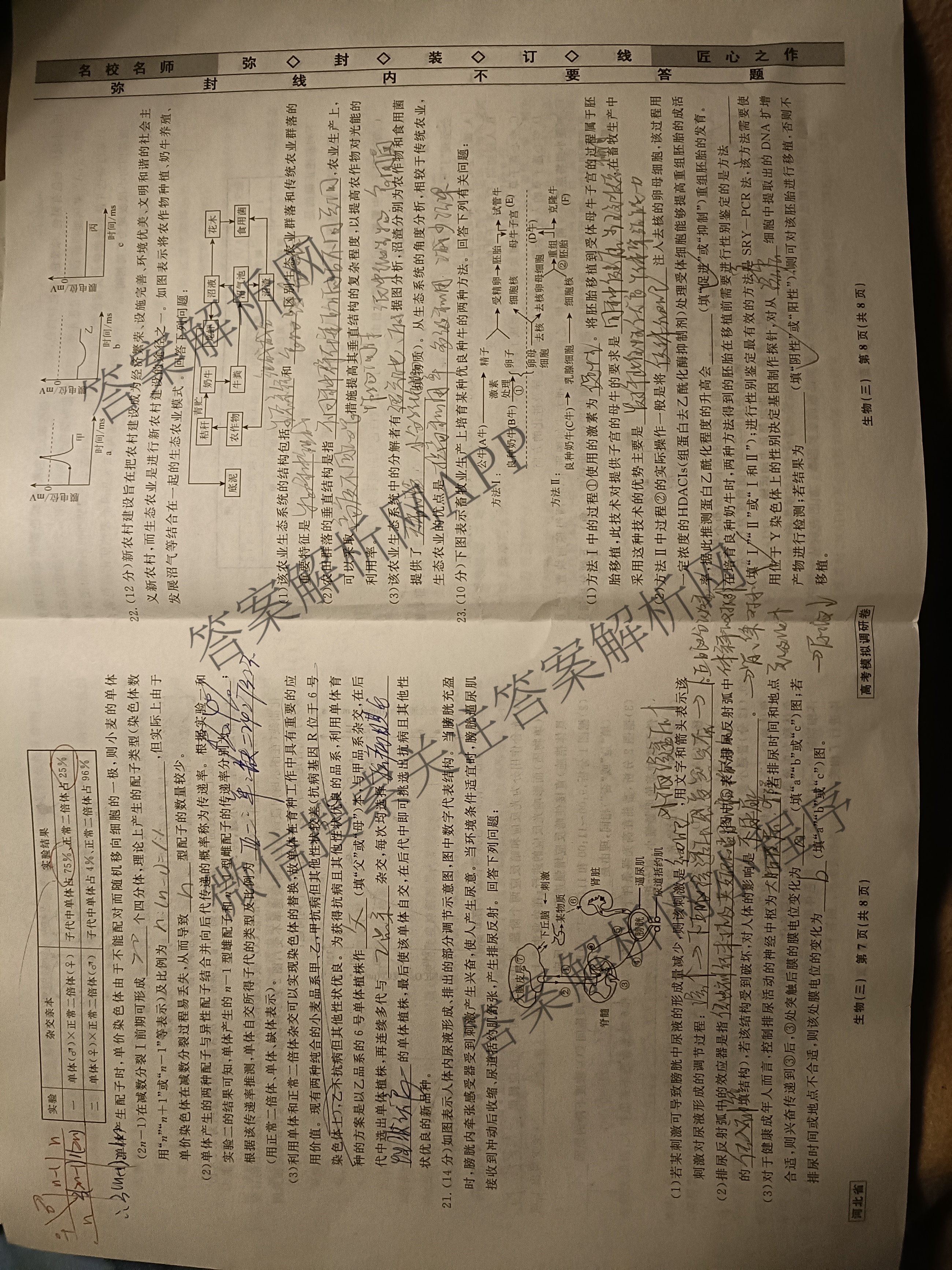 - (衡水名师卷)·河北省2023年高考模拟调研卷 生物(三)3答案