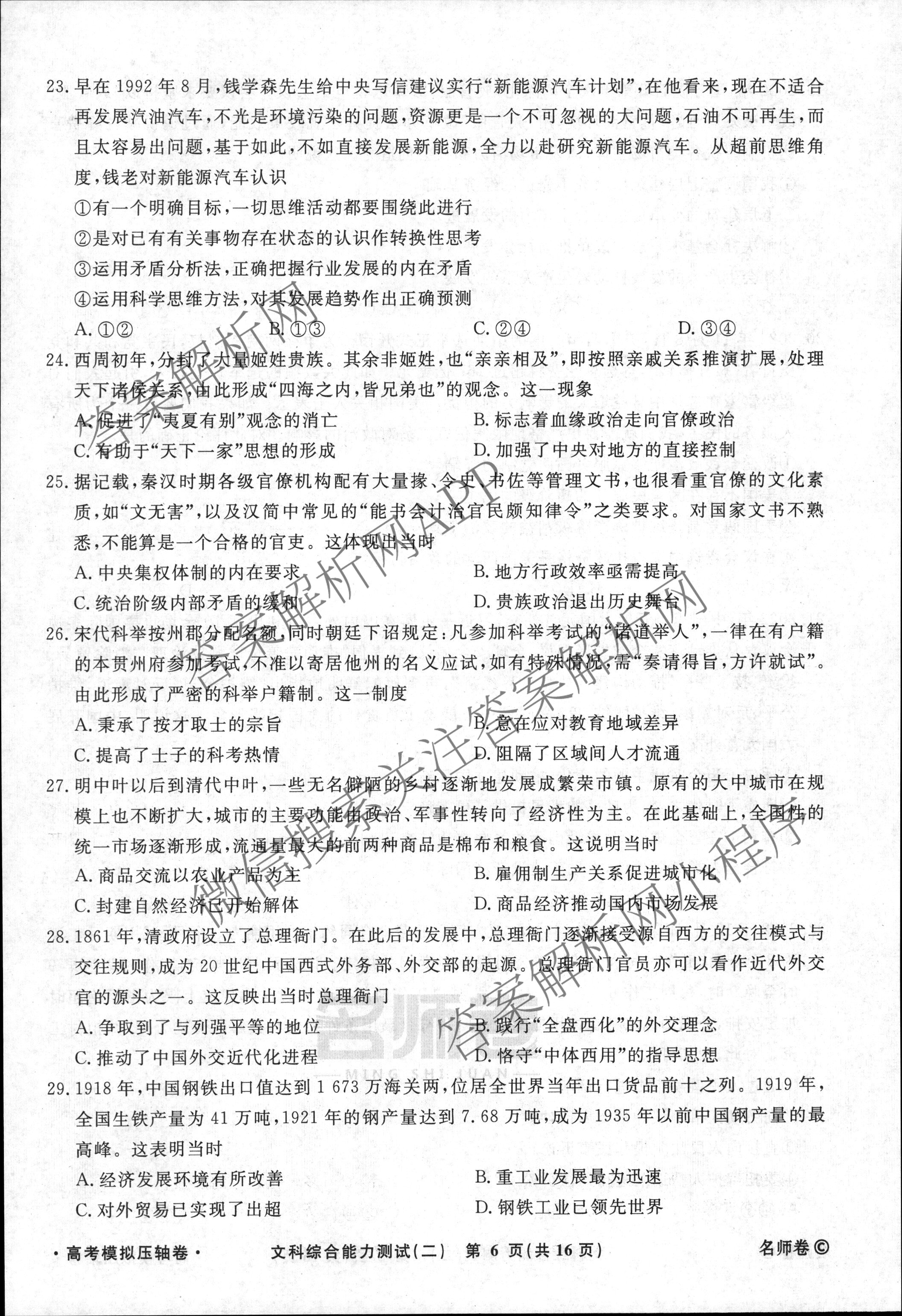 - [衡水名师卷]2022~2023高考模拟压轴卷 文综(新教材)(二)2答案