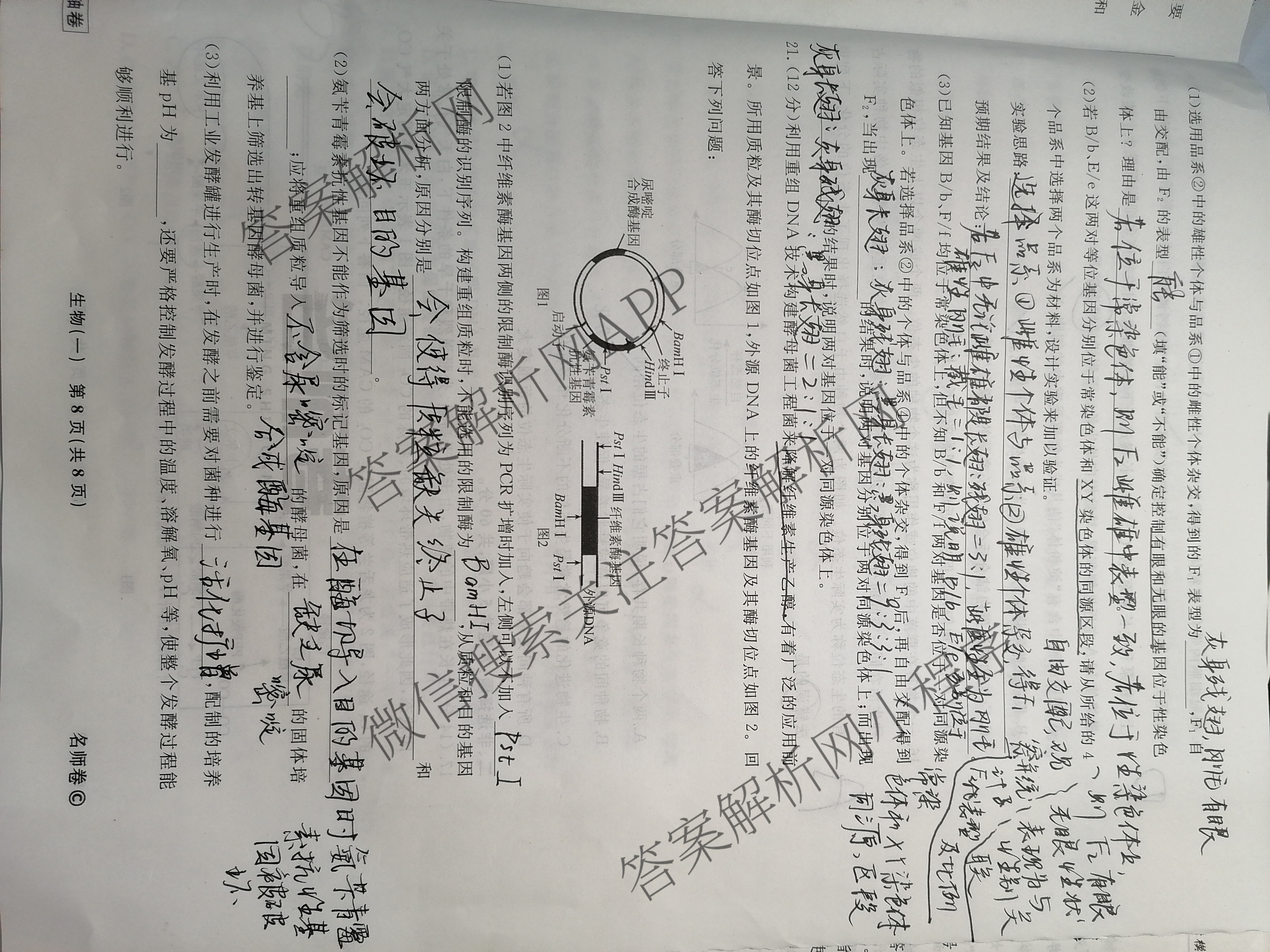 衡水名师卷·2022-2023高考模拟压轴卷 生物(福建)(一)1试题,目前分科卷答案网已经汇总了衡水名师卷·2022-2023高考模拟压轴卷 生物(福建)(一)1试题的各科答案和试卷,获取更多衡水名师卷答案解析,请在关注本站。