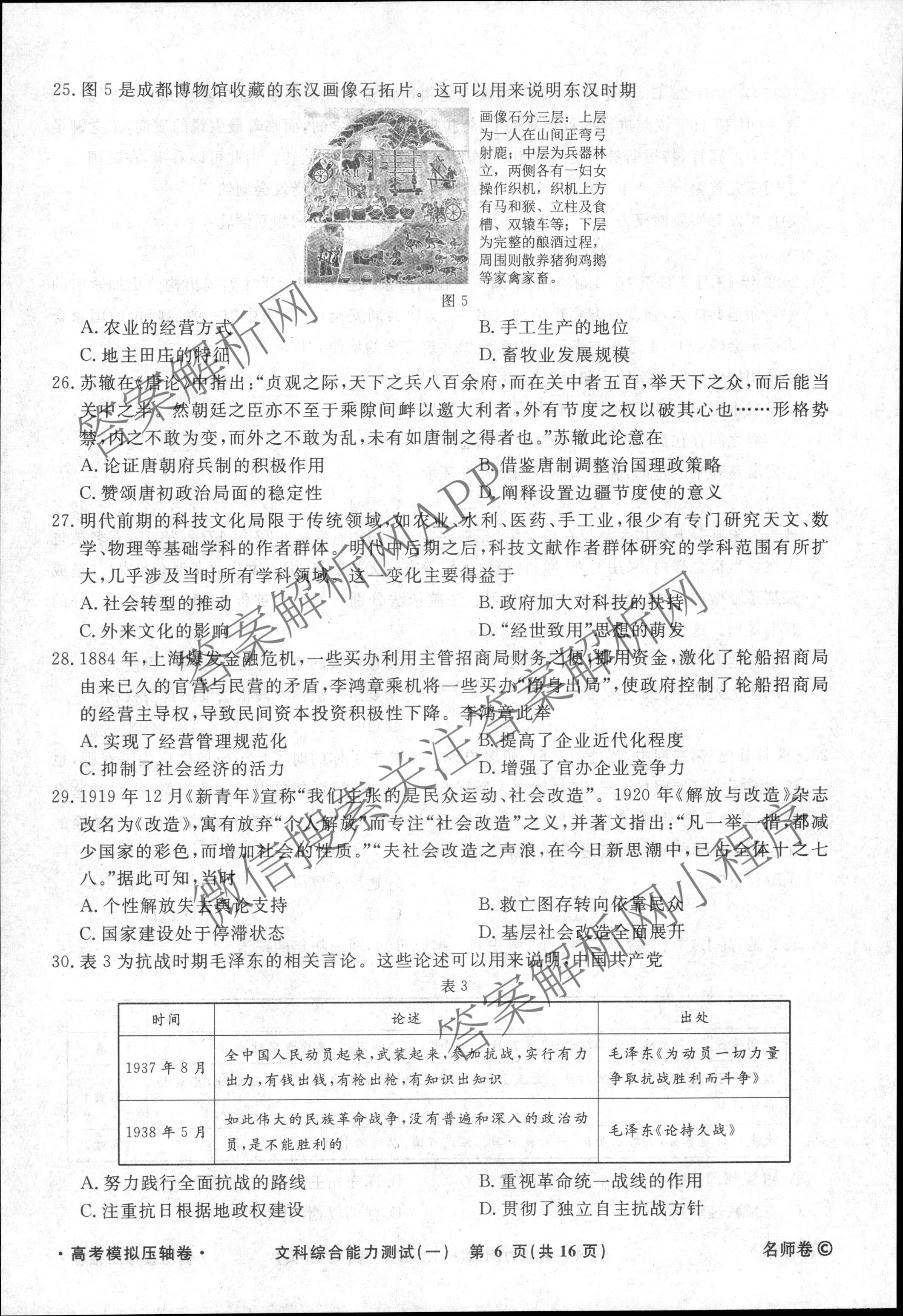 衡水名师卷·2022-2023高考模拟压轴卷 文综(新教材)(一)1试题,目前分科卷答案网已经汇总了衡水名师卷·2022-2023高考模拟压轴卷 文综(新教材)(一)1试题的各科答案和试卷,获取更多衡水名师卷答案解析,请在关注本站。
