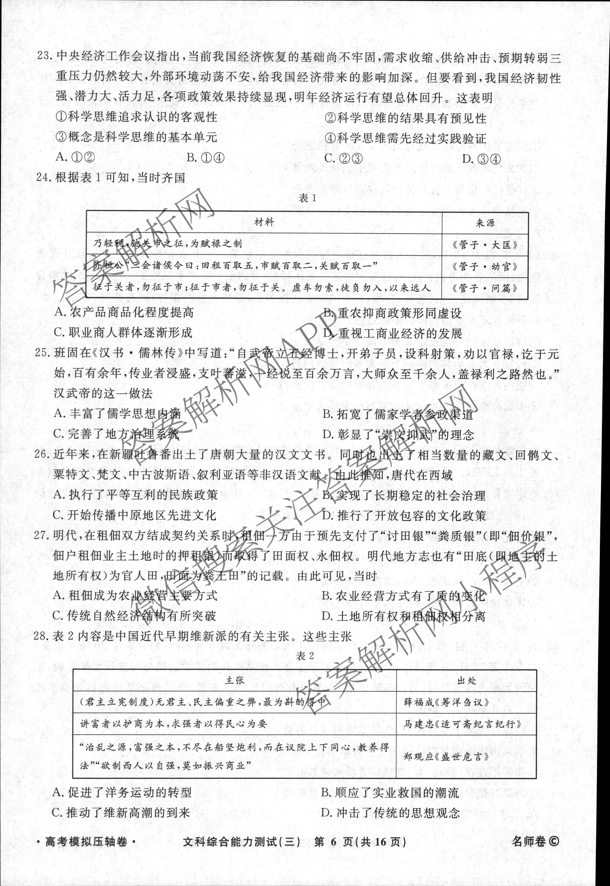 衡水名师卷·2022-2023高考模拟压轴卷 文综(新教材)(三)3试题,目前分科卷答案网已经汇总了衡水名师卷·2022-2023高考模拟压轴卷 文综(新教材)(三)3试题的各科答案和试卷,获取更多衡水名师卷答案解析,请在关注本站。