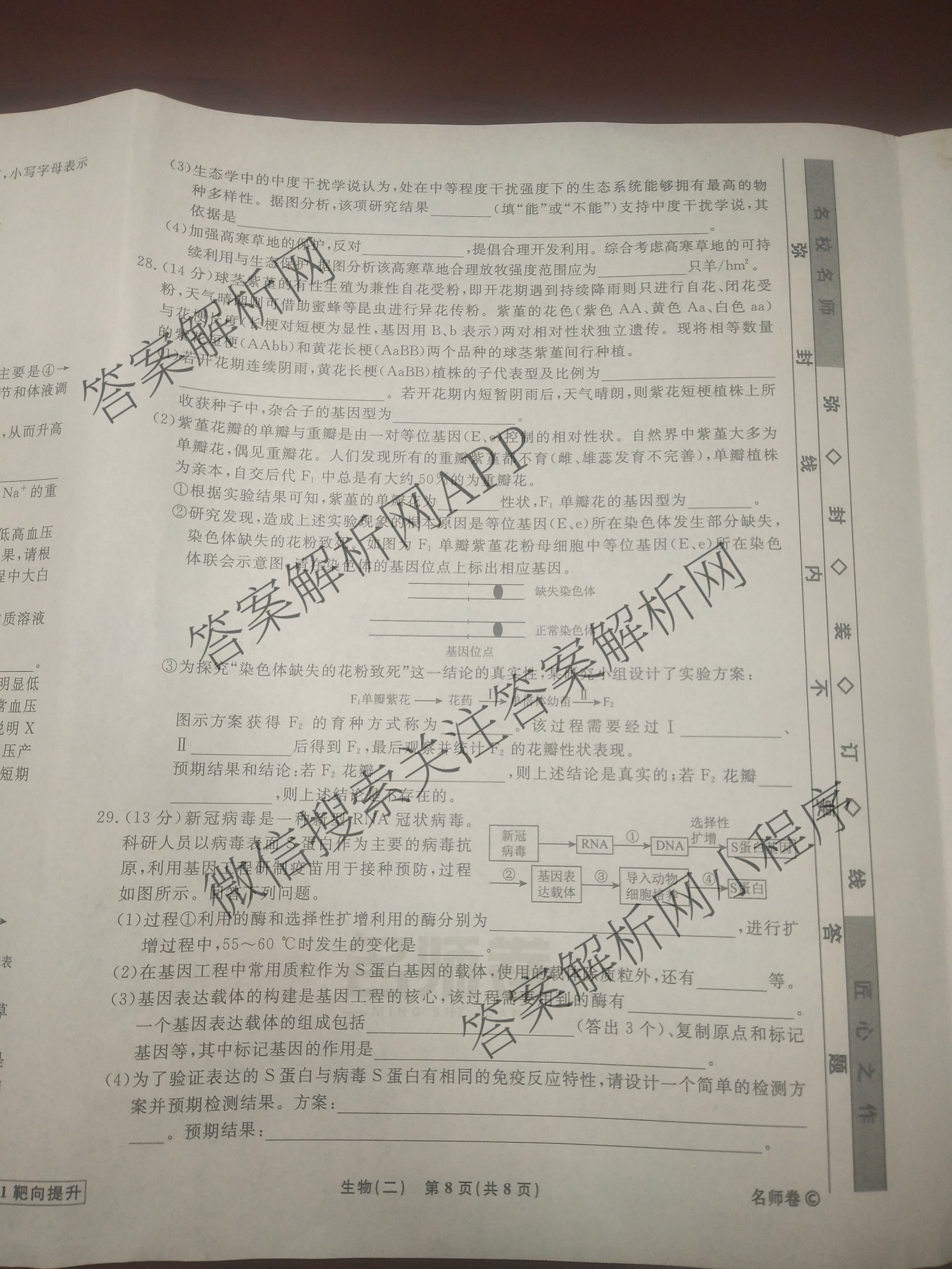 - [高三][衡水名师卷]·2022~2023学年度分科检测提分卷·151靶向提升(老高考)生物(二)2试题