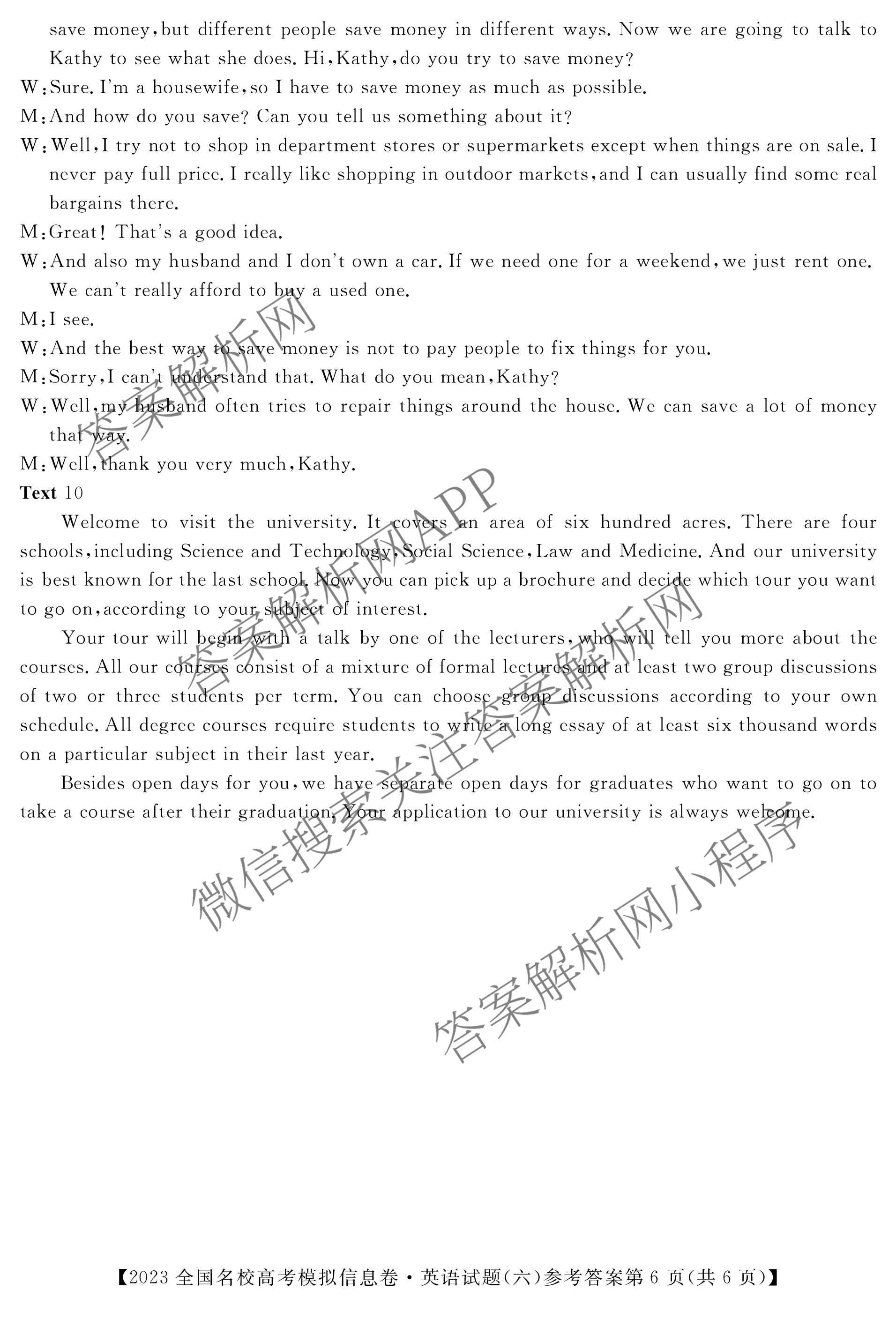 华普教育2023全国名校高考模拟信息卷 英语(新教材)(六)6答案