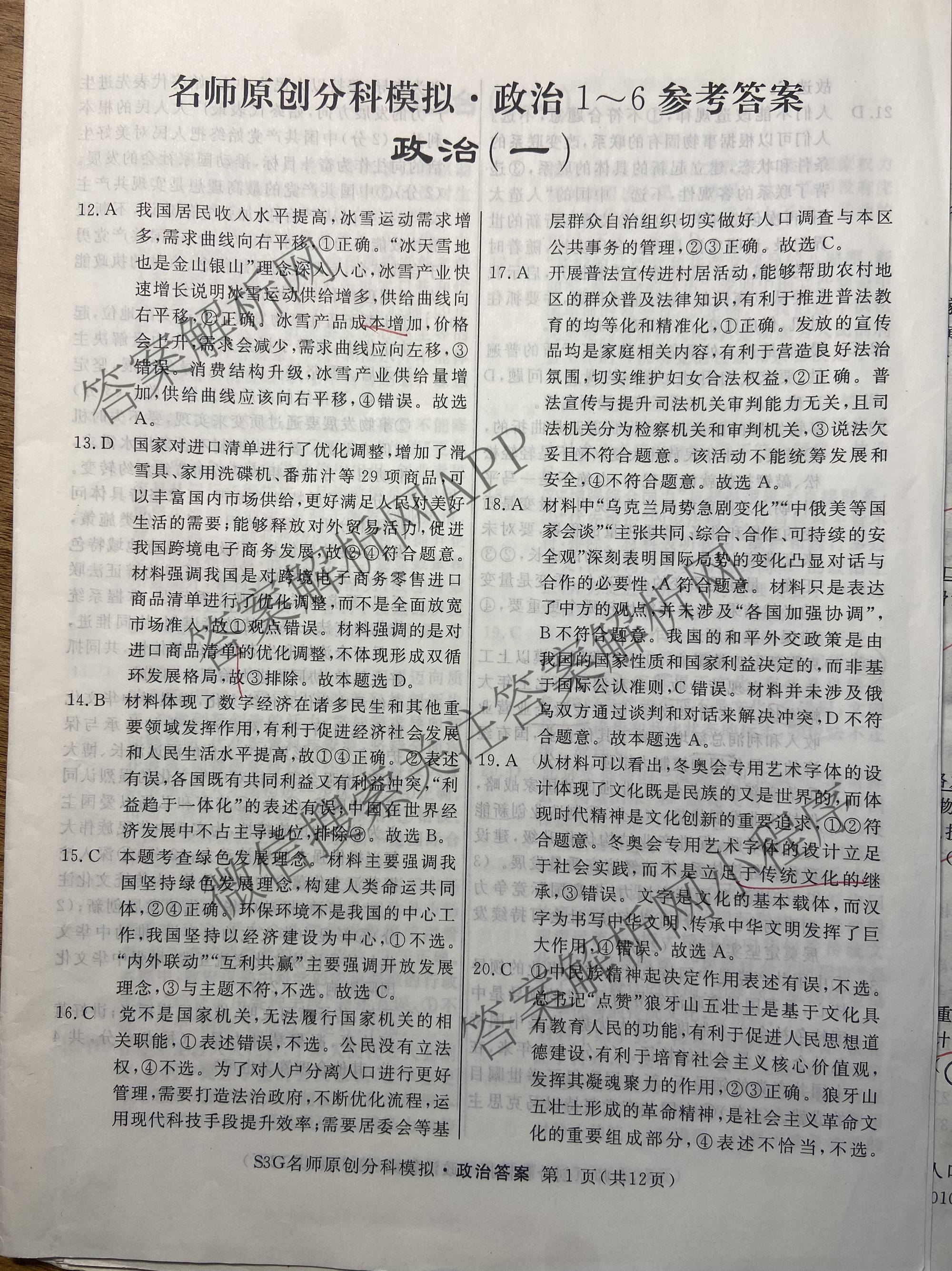 2023届高三总复习·名师原创分科模拟 政治(S3G)(一)1答案,目前分科卷答案网已经汇总了2023届高三总复习·名师原创分科模拟 政治(S3G)(一)1答案的各科答案和试卷,获取更多高三总复习·名师原创模拟答案解析,请在关注本站。