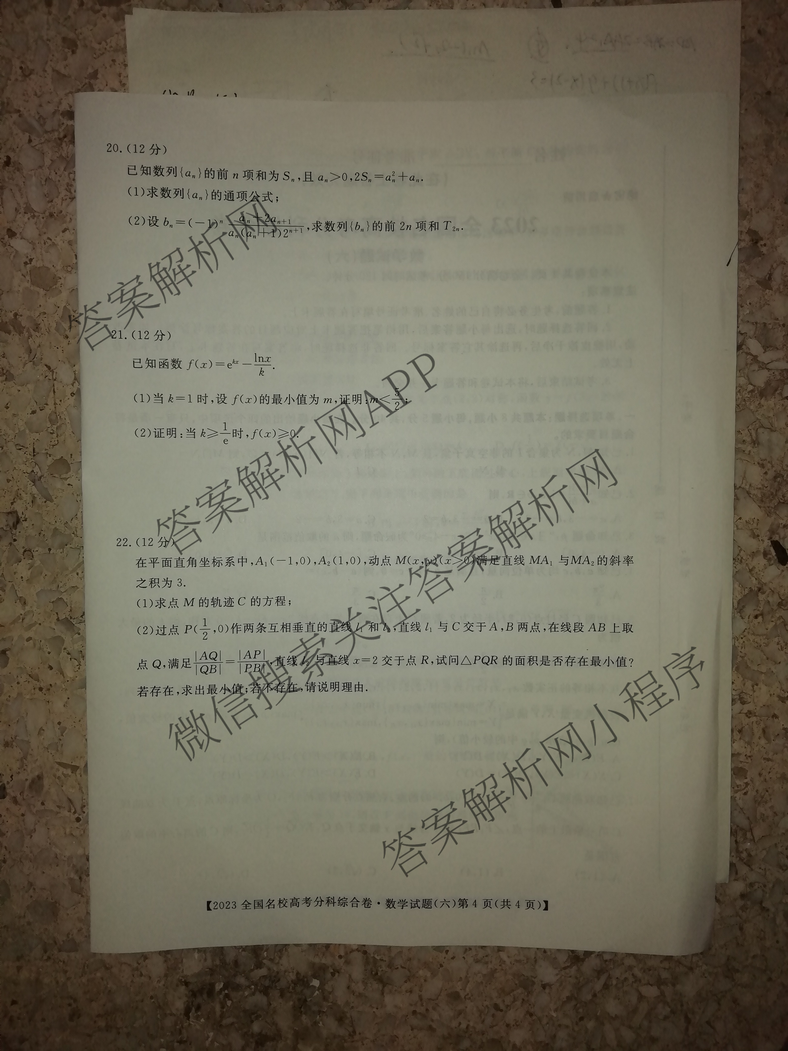 - 高三(华普教育)·2023全国名校高考分科综合卷数学(六)6答案