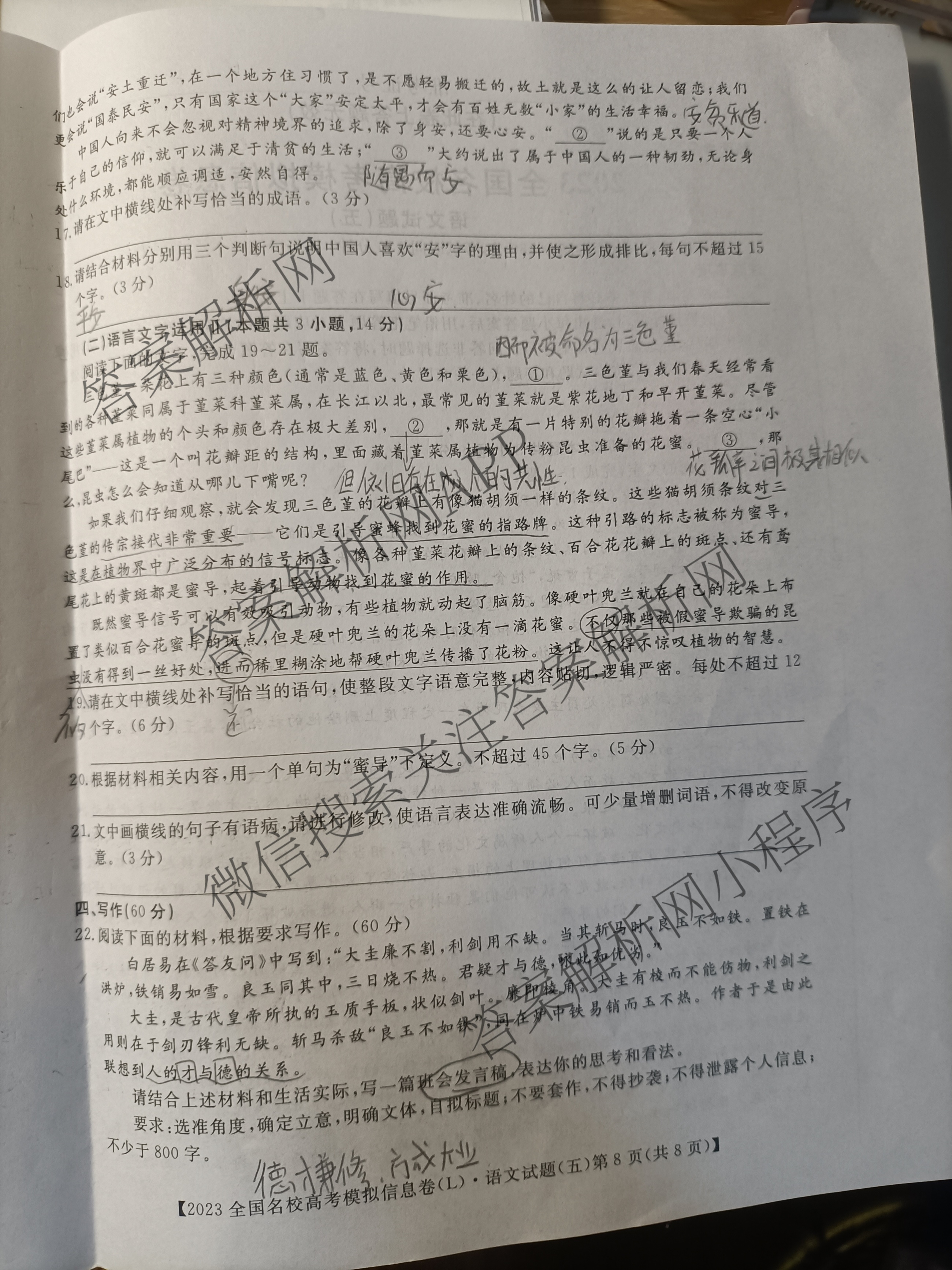 华普教育·2023全国名校高考模拟信息卷(L) 语文(五)5试题,目前分科卷答案网已经汇总了华普教育·2023全国名校高考模拟信息卷(L) 语文(五)5试题的各科答案和试卷,获取更多华普教育答案解析,请在关注本站。