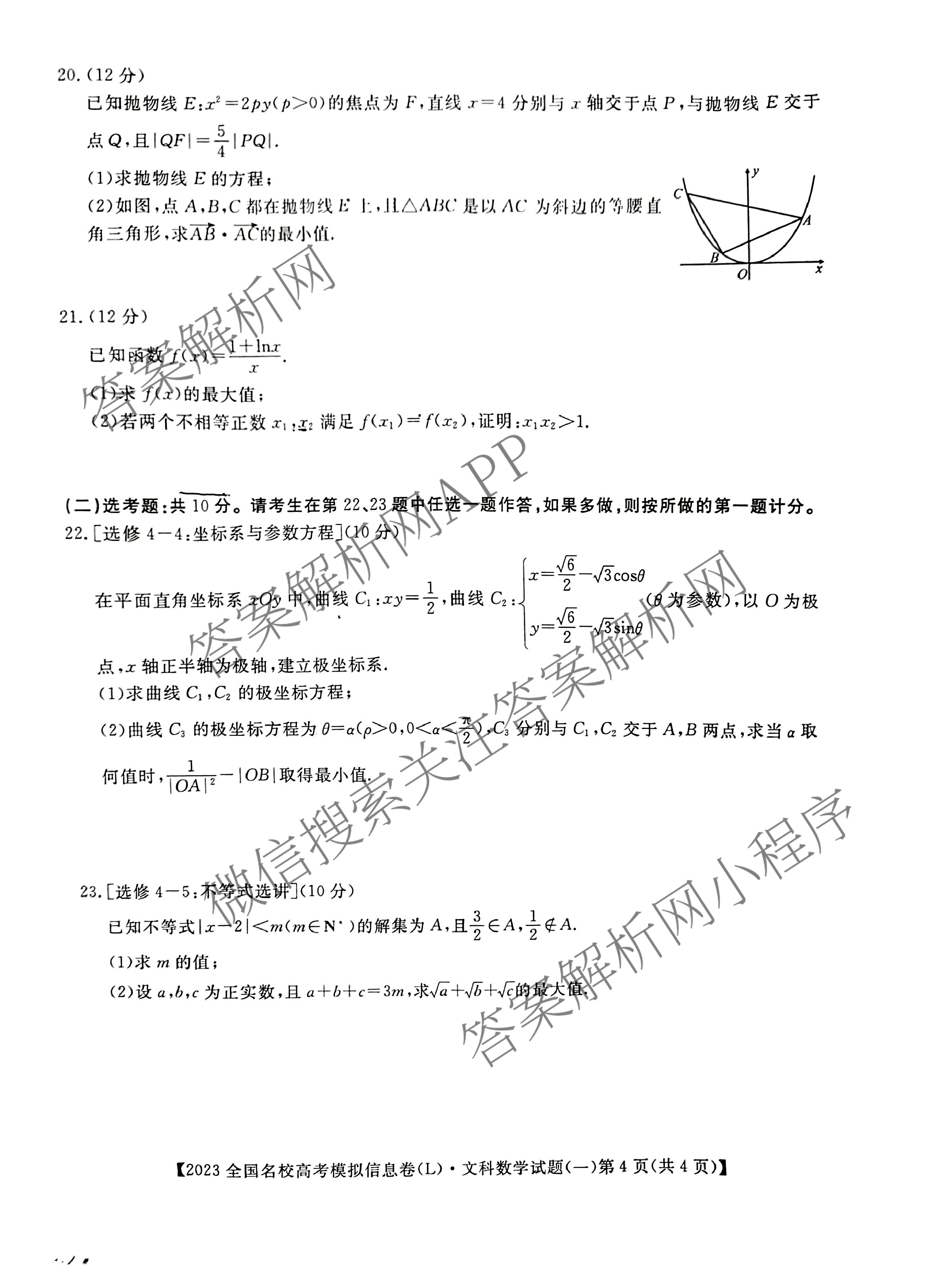 [高三][华普教育]·2023全国名校高考模拟信息卷(L) 文数(一)1试题