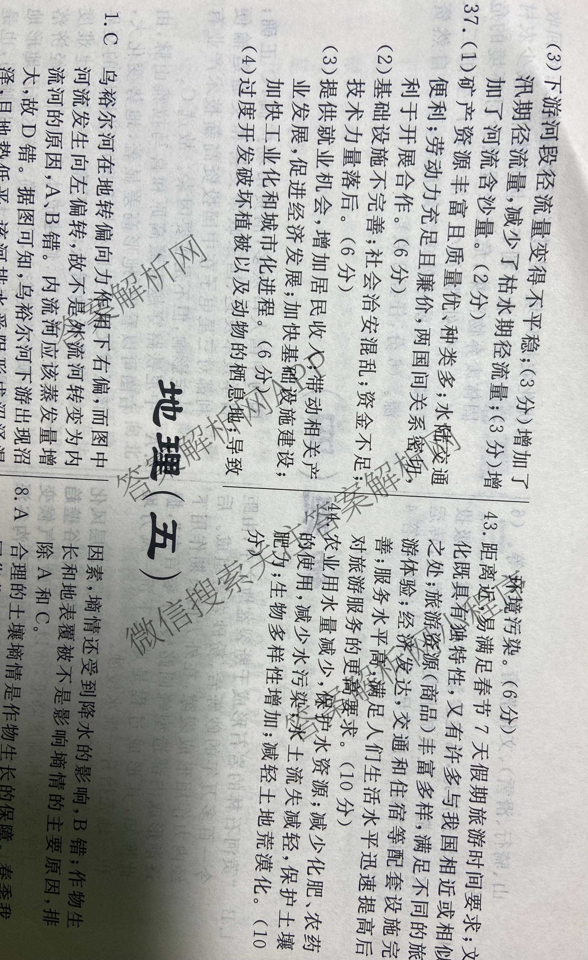 - 2023届(高三)总复习S3名师原创模拟地理(四)4答案