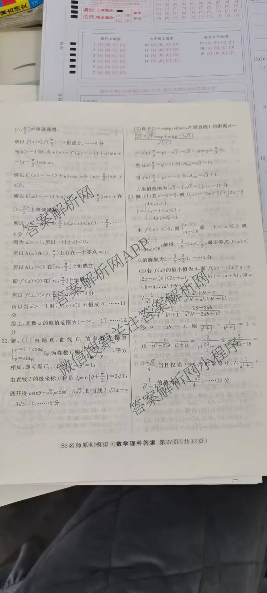 2023届高三总复习·S3名师原创模拟理数(十一)11答案,目前分科卷答案网已经汇总了2023届高三总复习·S3名师原创模拟理数(十一)11答案的各科答案和试卷,获取更多高三总复习·名师原创模拟答案解析,请在关注本站。