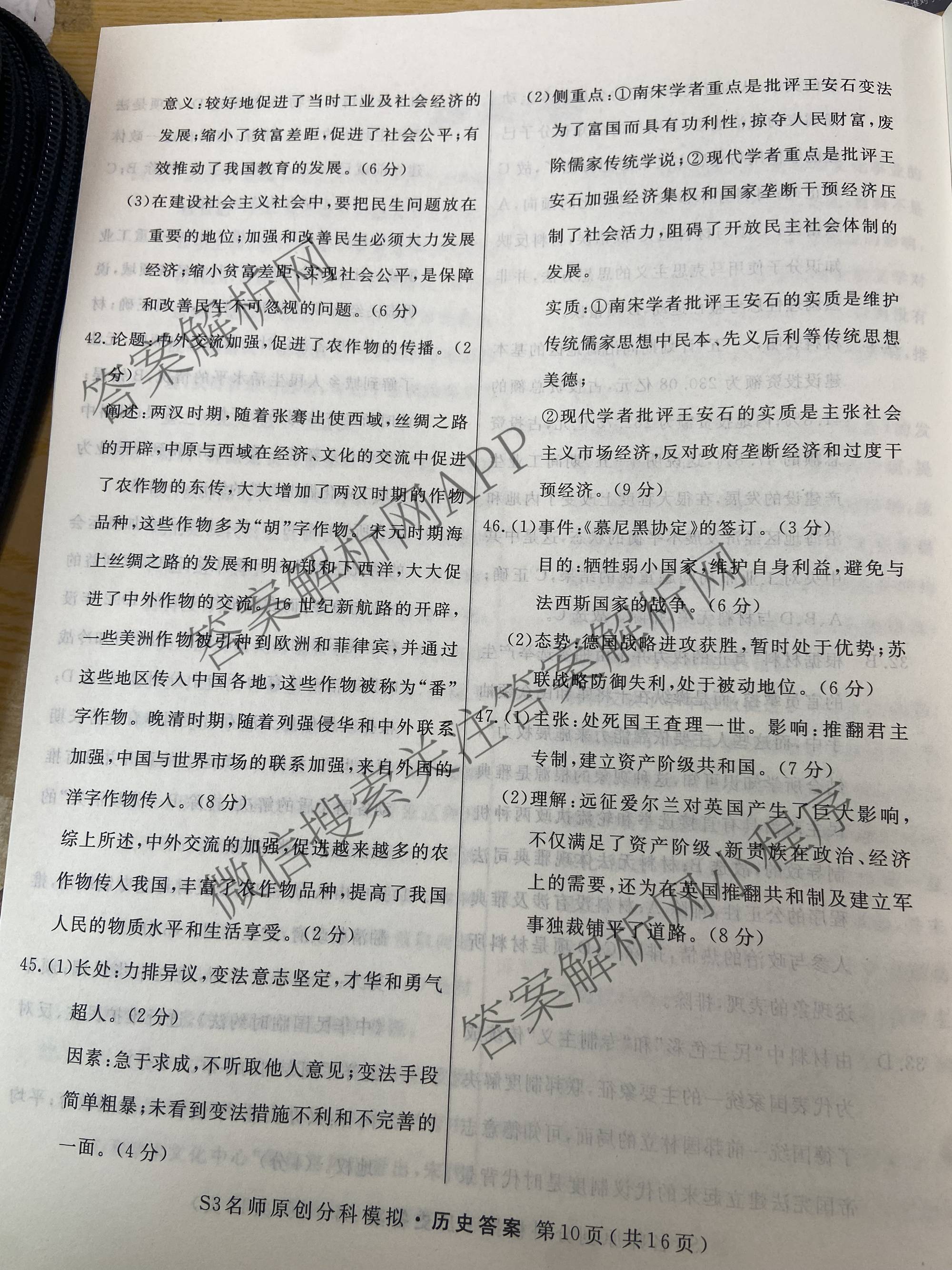 2023届(高三)总复习·S3名师原创模拟历史(四)4答案