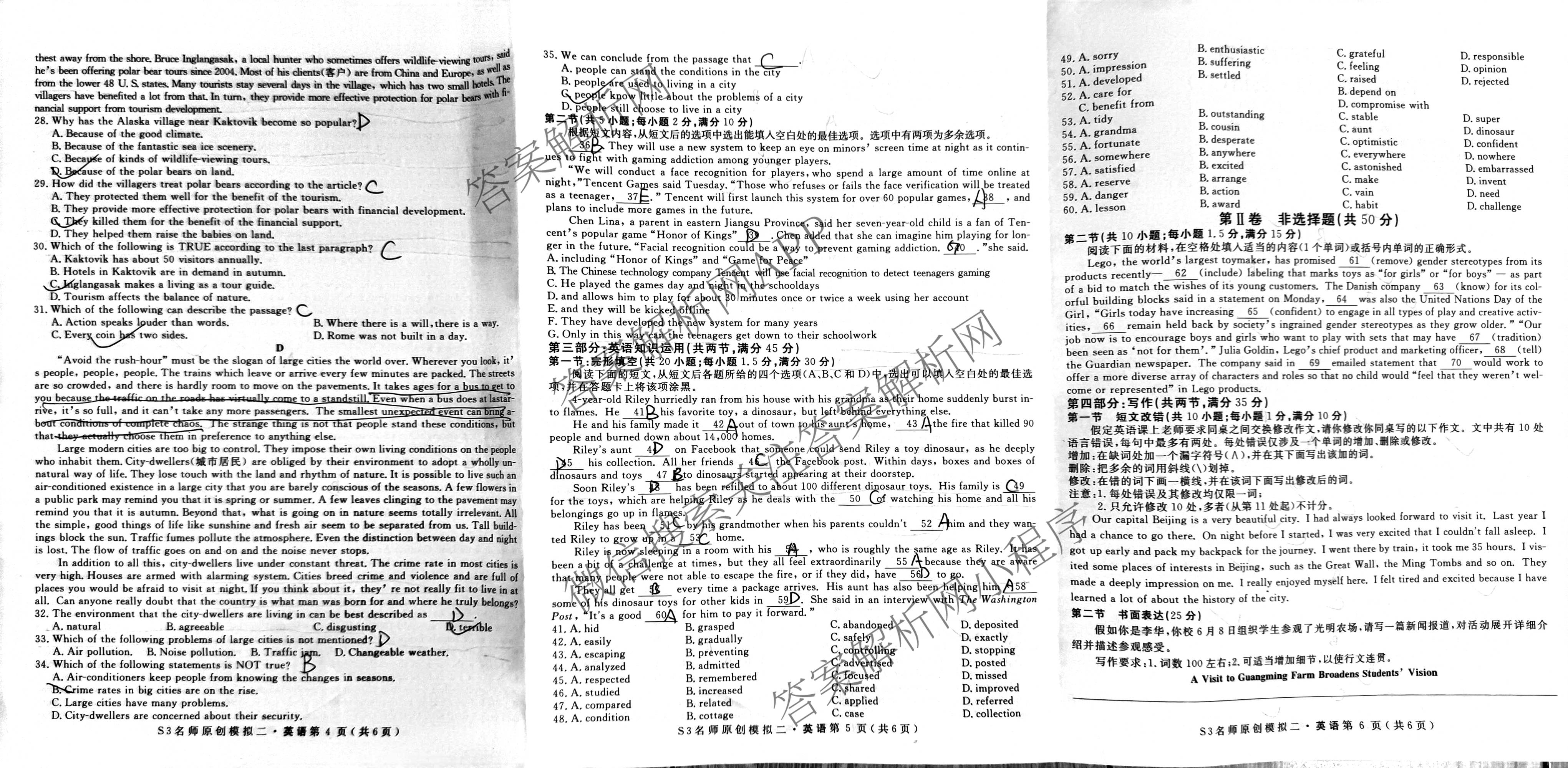 - [高三]2023届总复习新S3 名师原创模拟英语(二)2答案