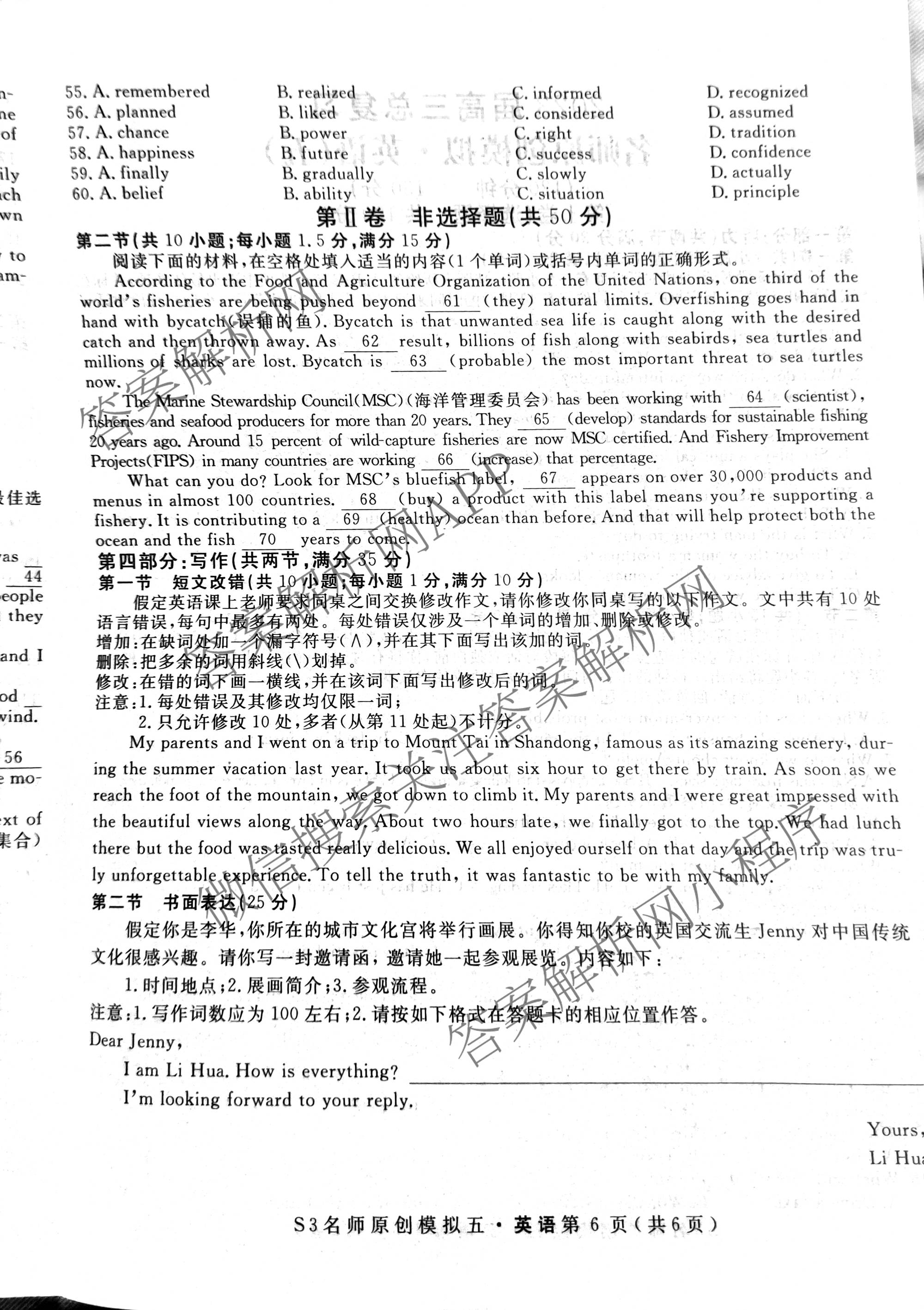 - 2023届(高三)总复习S3名师原创模拟 英语(五)5答案