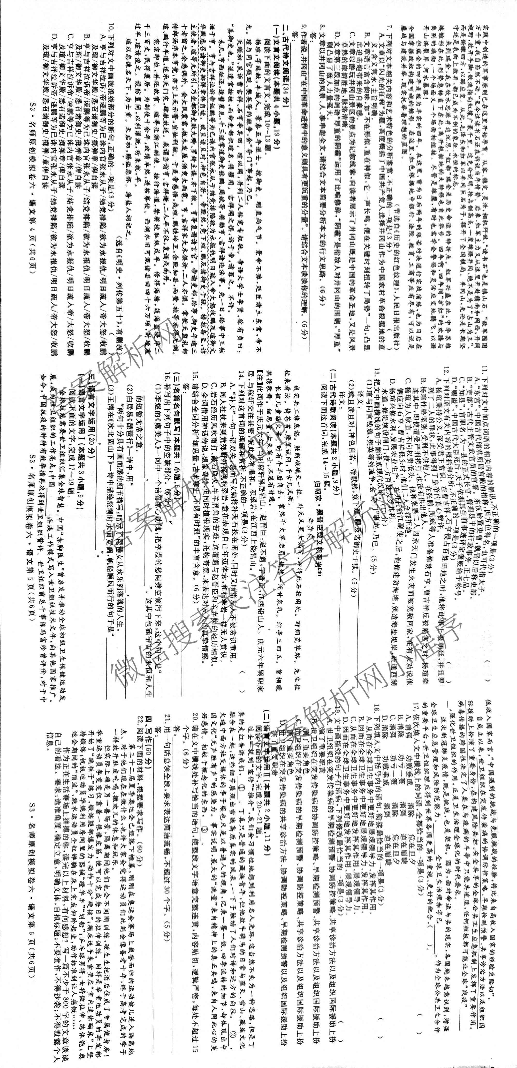 - (高三)2023届总复习·S3名师原创模拟语文(六)6答案