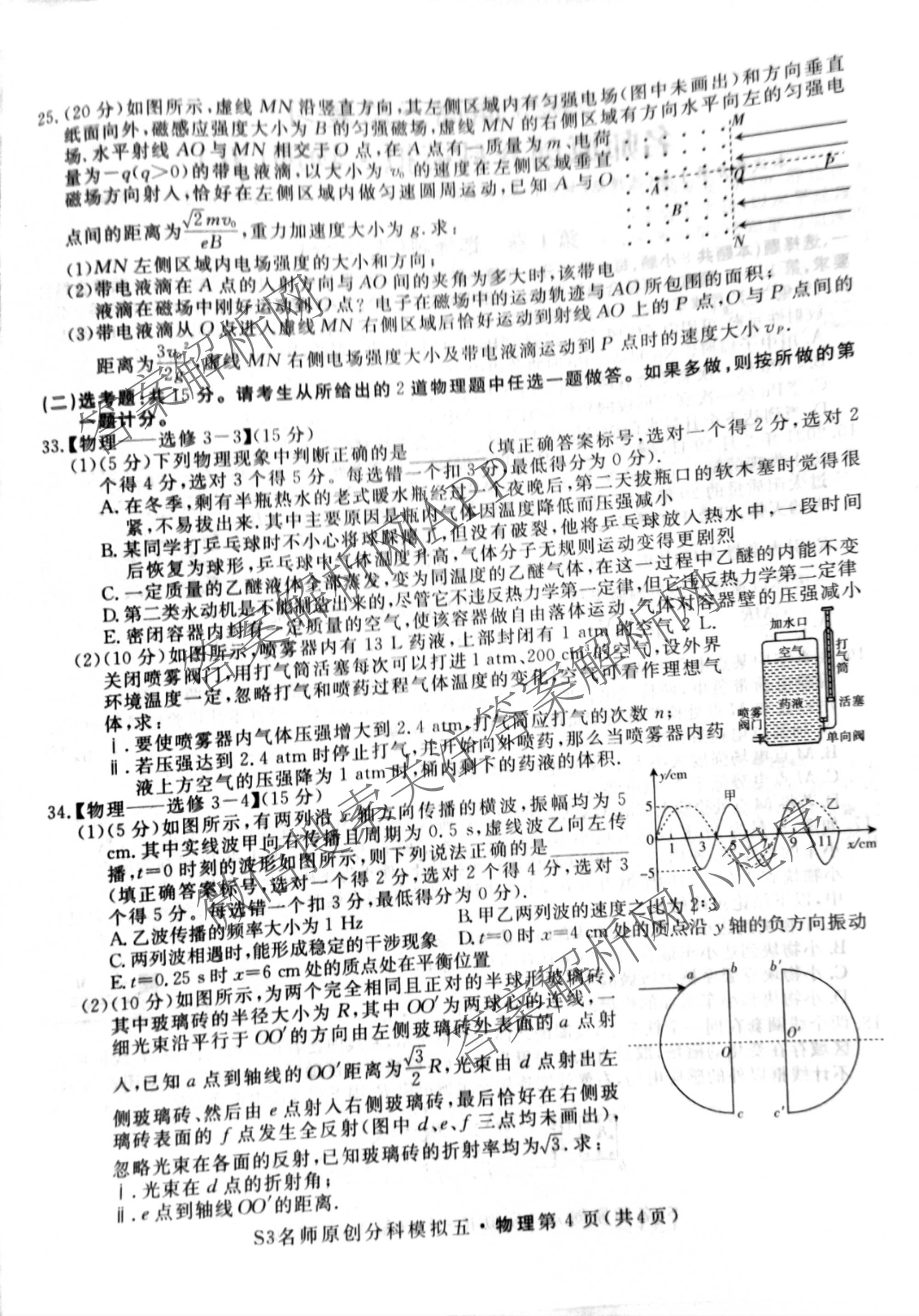 - (高三)2023届总复习·S3名师原创模拟物理(五)5答案