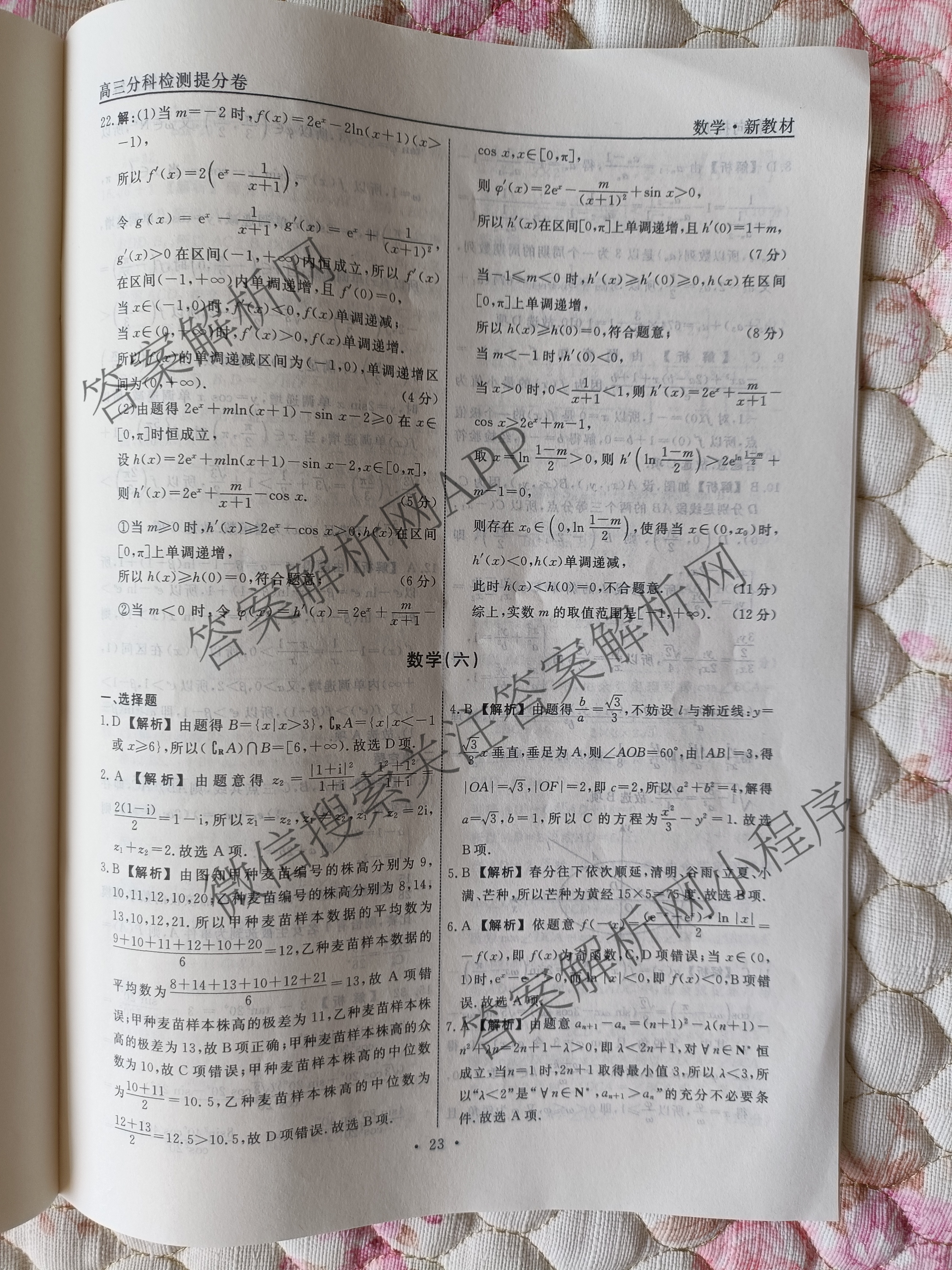 - [高三](衡水名师卷)2022-2023学年度分科检测提分卷151靶向提升(新教材)数学(五)5答案