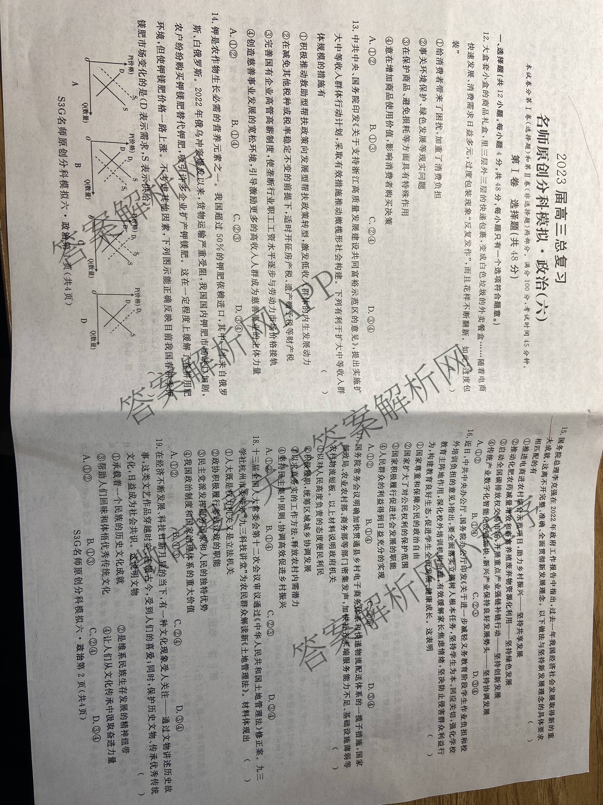 - (高三)2023届总复习·S3名师原创分科模拟政治(六)6答案