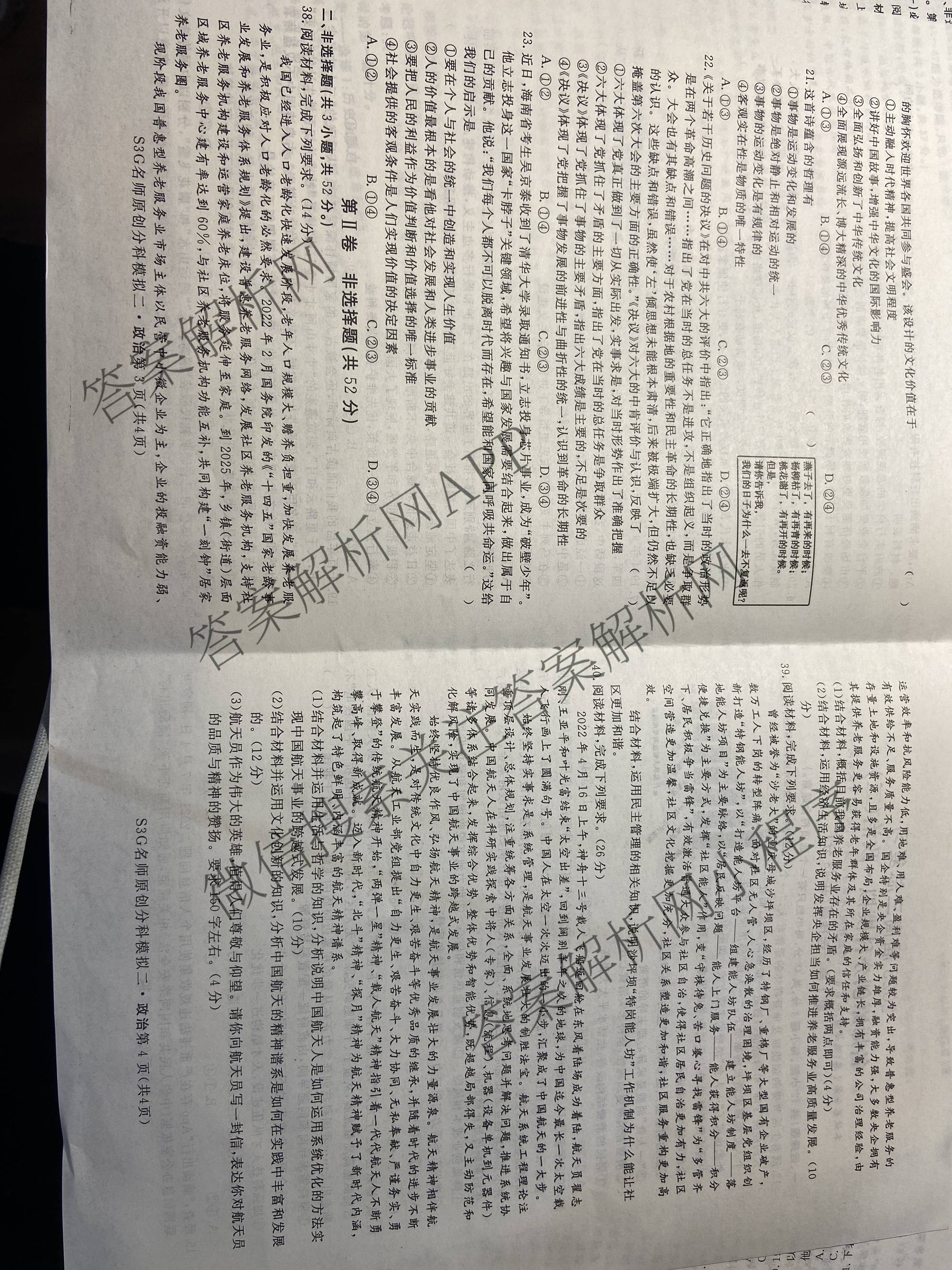 - [高三]2023届总复习·新S3G名师原创模拟政治(二)2答案