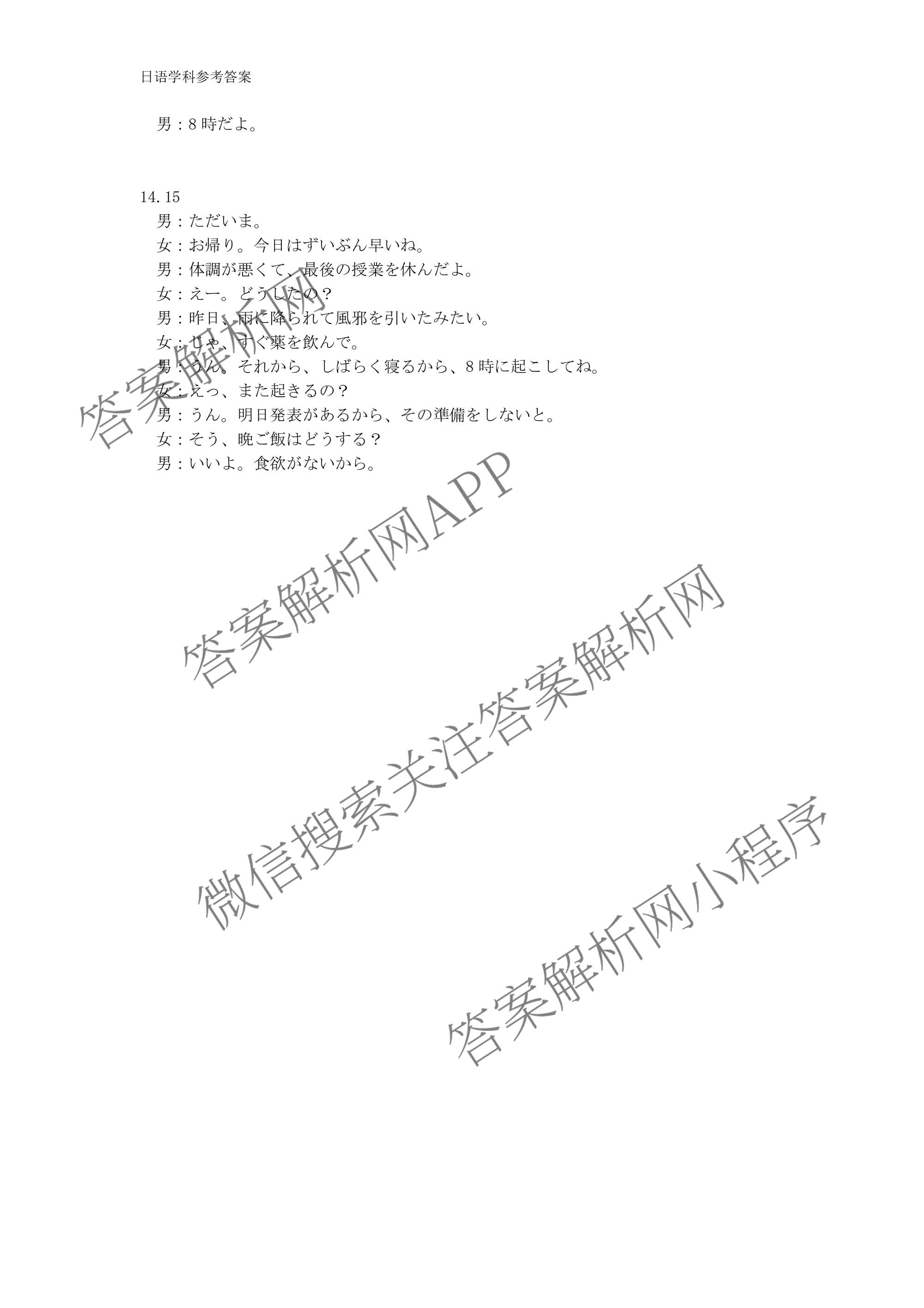 2023年安徽省江南十校联考日语答案,目前分科卷答案网已经汇总了2023年安徽省江南十校联考日语答案的各科答案和试卷,获取更多江南十校答案解析,请在关注本站。