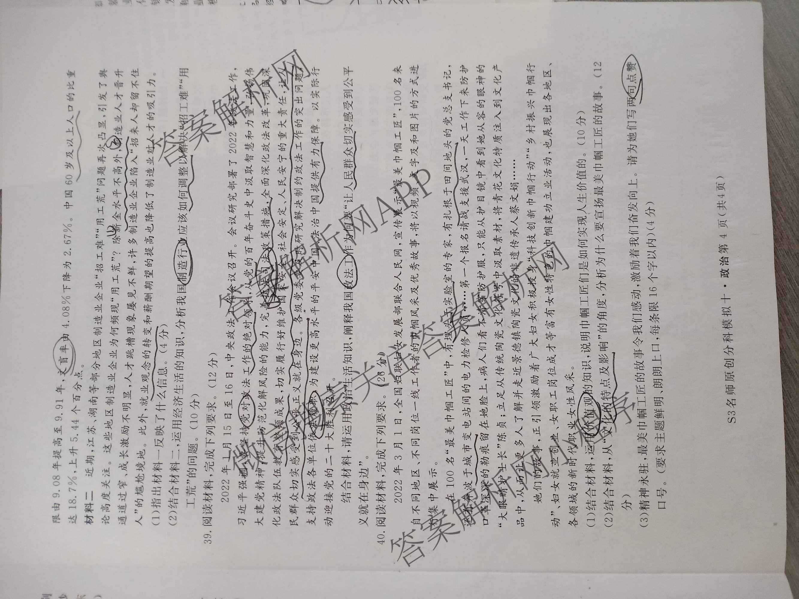 2023届高三总复习S3名师原创分科模拟政治(十)10试题