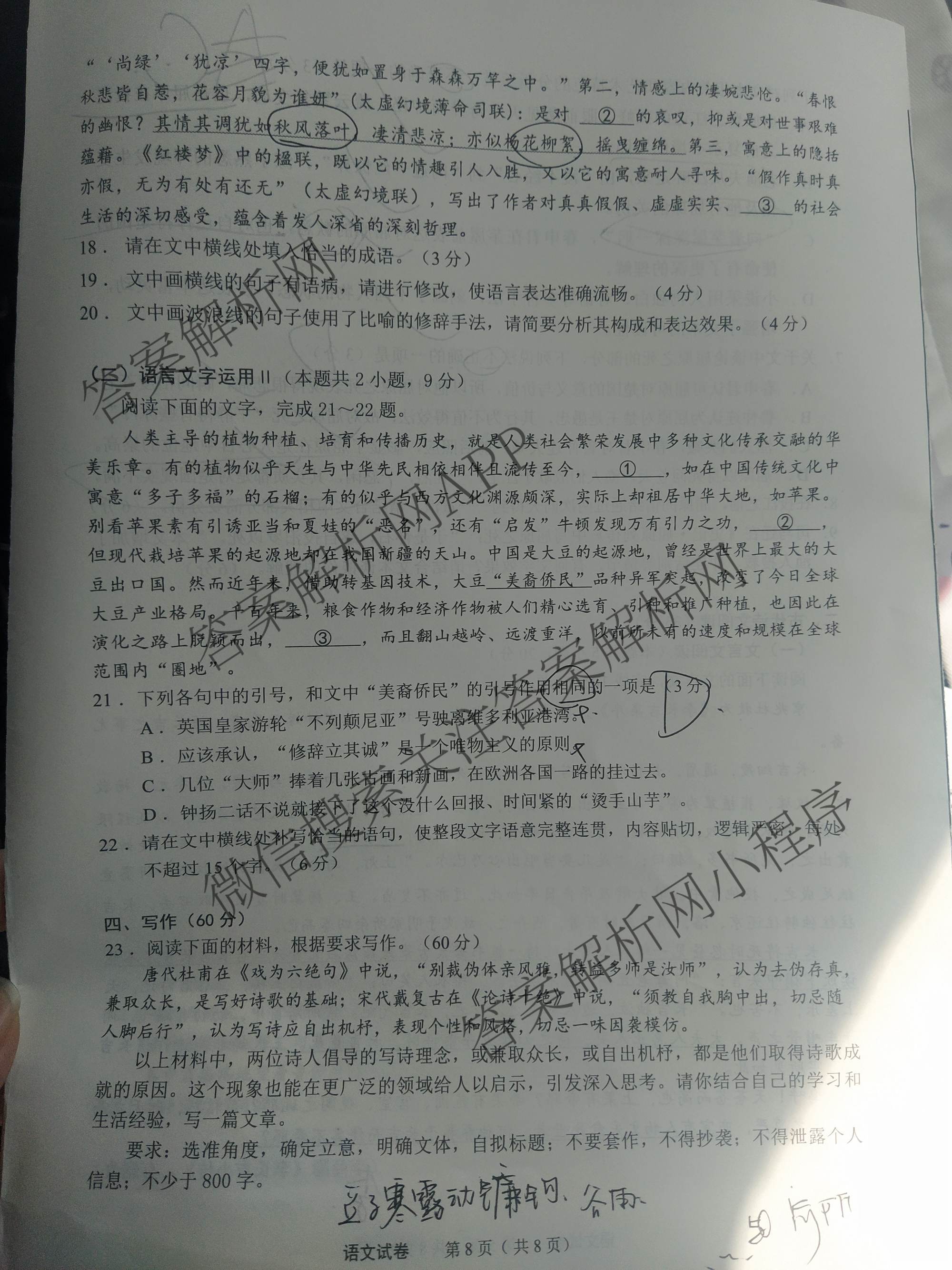 2023年安徽省江南十校联考语文试题,目前分科卷答案网已经汇总了2023年安徽省江南十校联考语文试题的各科答案和试卷,获取更多江南十校答案解析,请在关注本站。