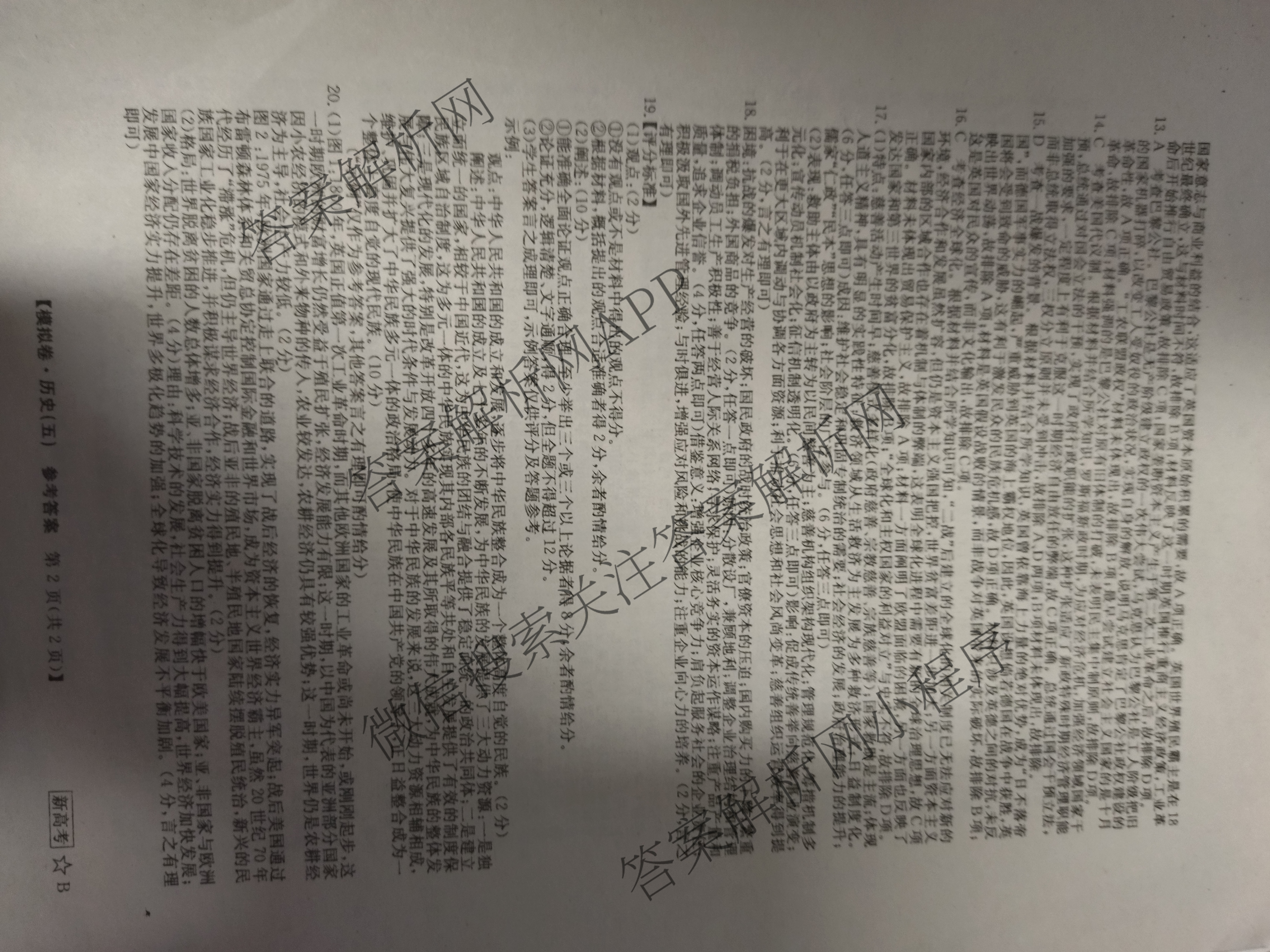 - 2023届[高三]全国新高考分科综合模拟测试卷 历史 新高考☆(五)5答案