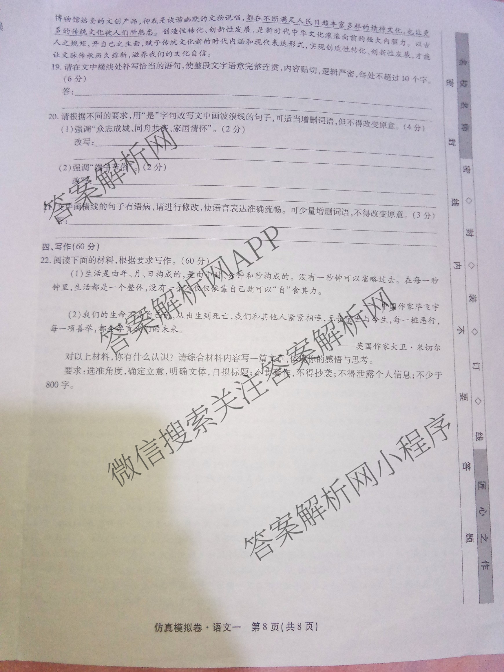 衡水名师卷·2023届普通高等学校招生全国统一考试仿真模拟卷 语文(一)1试题,目前分科卷答案网已经汇总了衡水名师卷·2023届普通高等学校招生全国统一考试仿真模拟卷 语文(一)1试题的各科答案和试卷,获取更多衡水名师卷答案解析,请在关注本站。