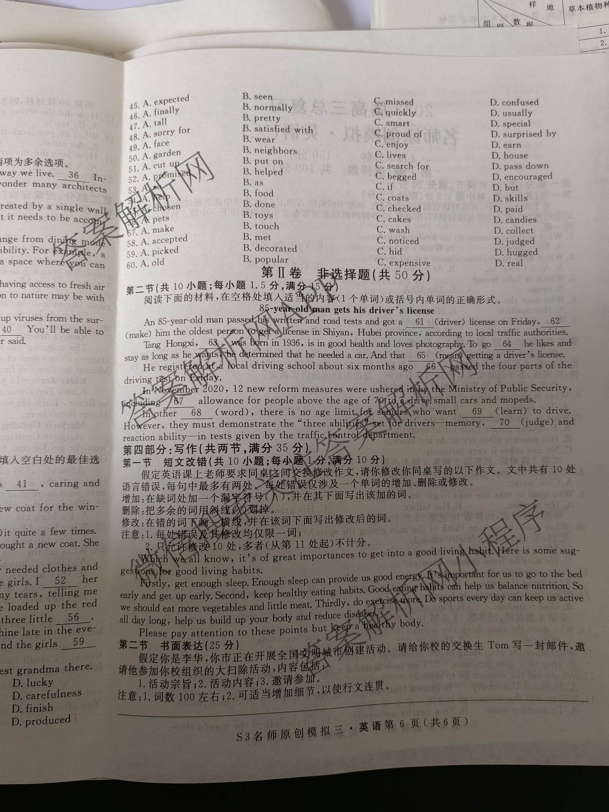 2023届高三总复习·S3名师原创模拟 英语(三)3试题,目前分科卷答案网已经汇总了2023届高三总复习·S3名师原创模拟 英语(三)3试题的各科答案和试卷,获取更多高三总复习·名师原创模拟答案解析,请在关注本站。
